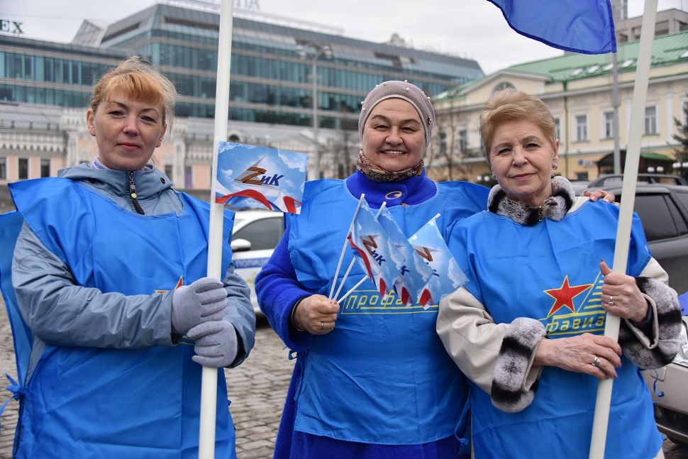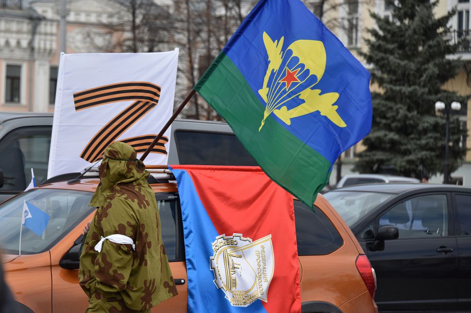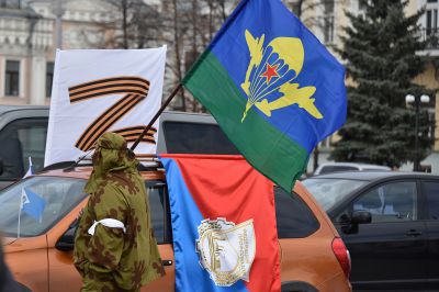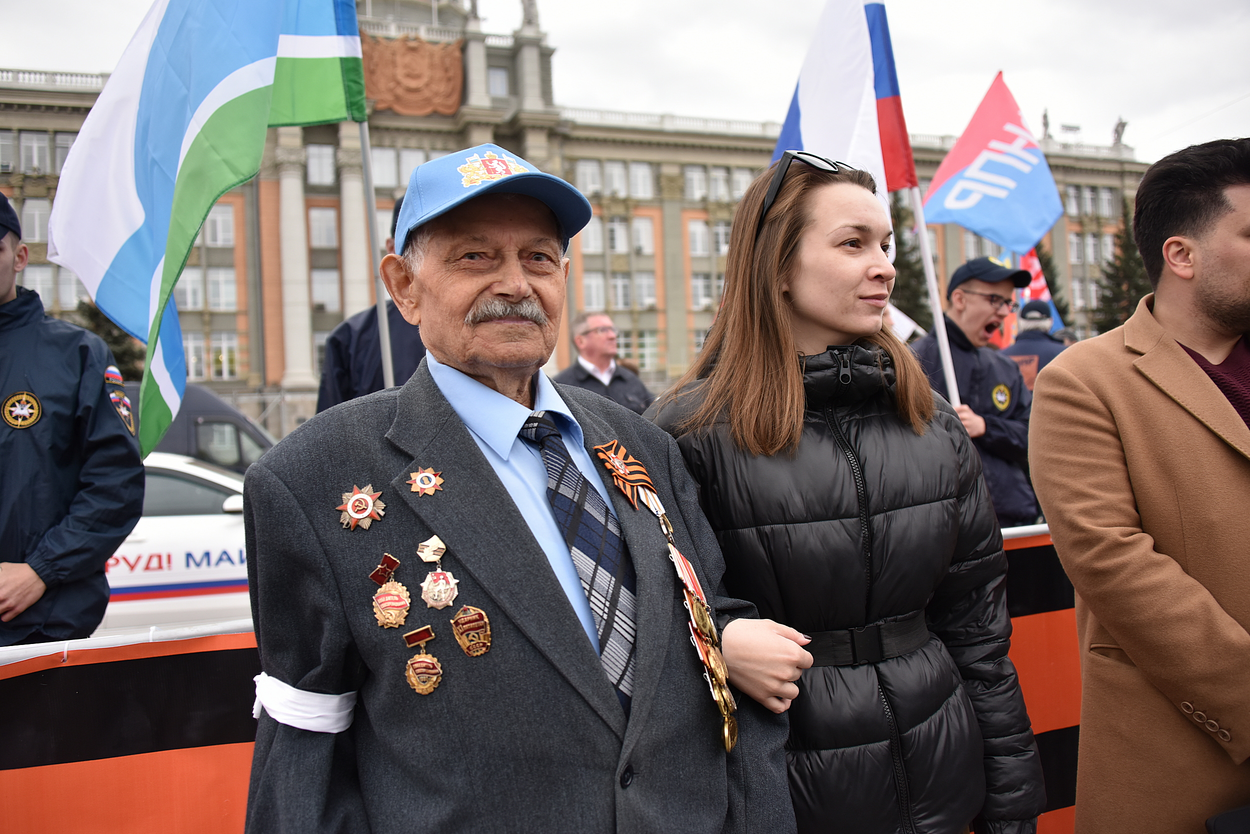 В рамках автопробега в Екатеринбурге прошел флешмоб «Белая лента». Первым символ поддержки российских вооруженных сил повязали ветерану Великой Отечественной войны Петру Адамову.