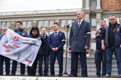 «Для ветеранов лозунг «Мир без нацизма» – это самое главное. Белая лента символизирует наш путь, который сближает и соединяет людей. Мы, ветераны поддерживаем Президента нашей страны, поддерживаем этот автопробег», – заявил председатель совета ветеранов предприятий Свердловской области Петр Брыков.