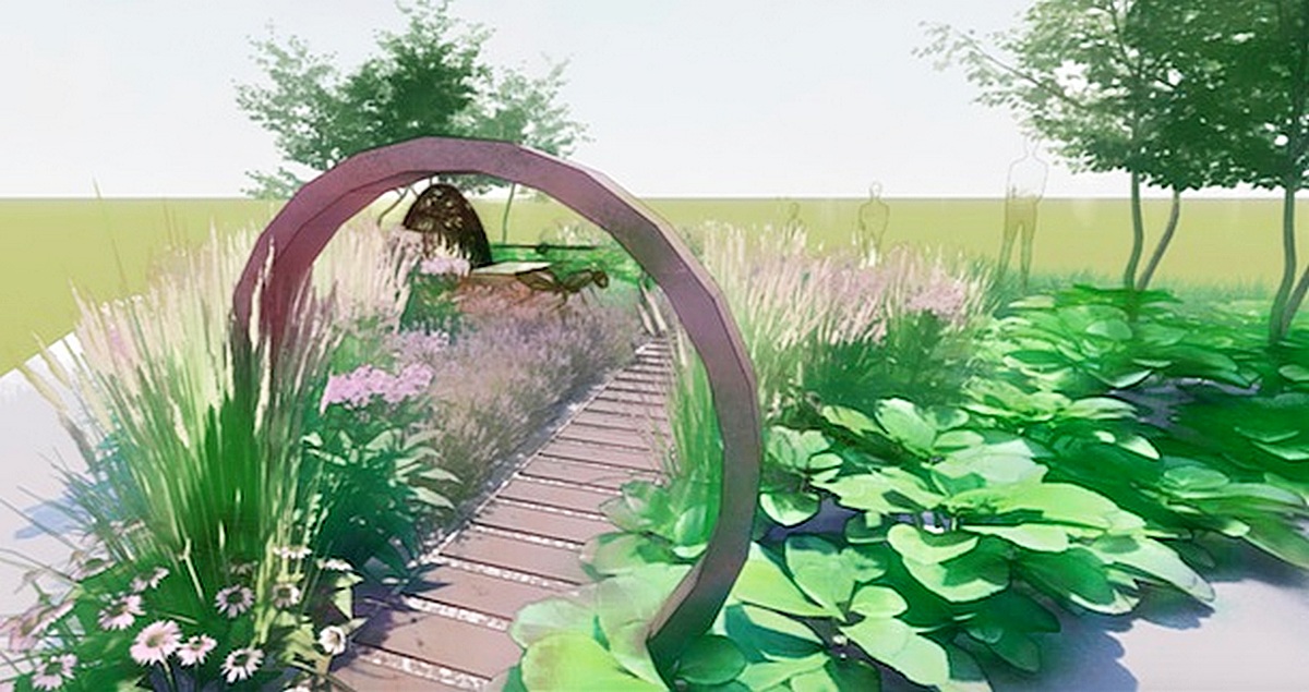На третьем месте проект «Река призрак» - Екатерины Егоровой, студия ландшафта "Белые сады". Вертикальные металлические конструкции символизируют спрятанные в коллекторы реки, которых в Екатеринбурге насчитывается около десяти. В саду есть качели, места для отдыха и даже летняя библиотека.