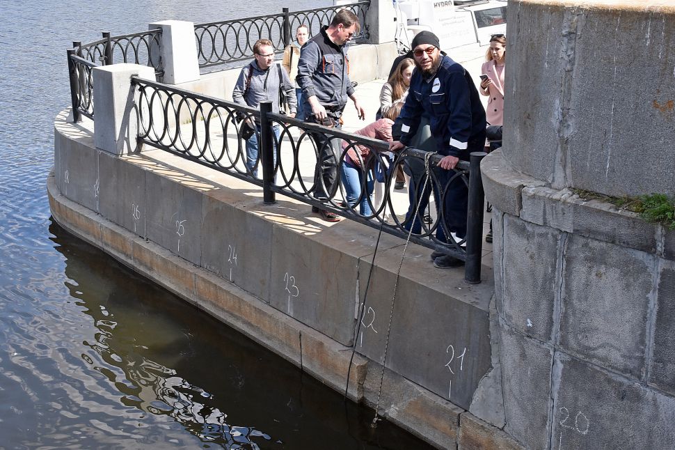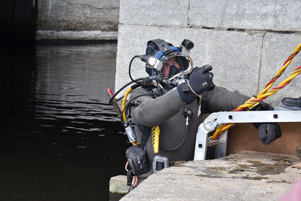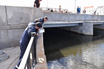 Водолазы обследовали бетонные конструкции городской плотины в Екатеринбурге. Фото