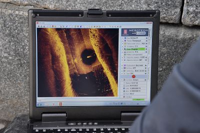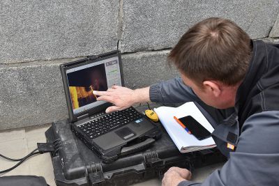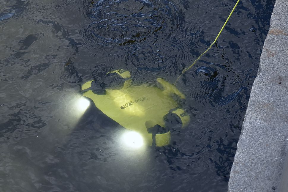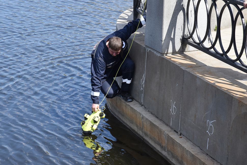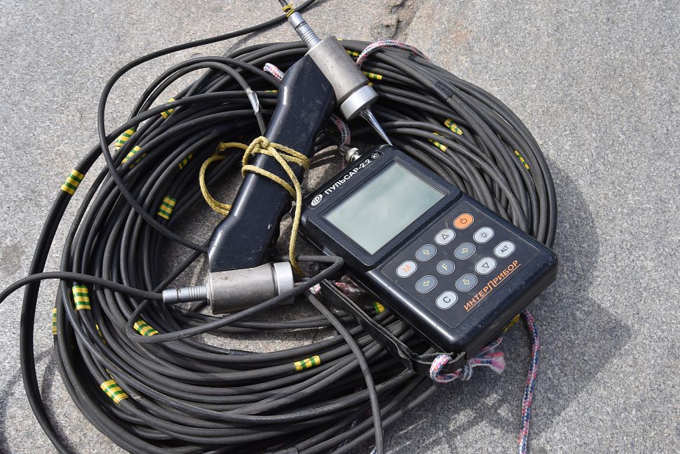 Журналистам также показали работу дрона для выполнения подводной съемки в высоком разрешении, ультразвуковой дефектоскоп для измерения прочности бетона, обнаружения дефектов в подводной части конструкции, а также компактный подводный ультразвуковой толщиномер.