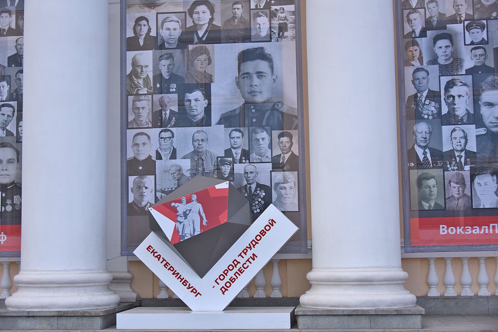 Фасад вокзала в Екатеринбурге украсили портреты 850 героев Великой Отечественной войны. Фото