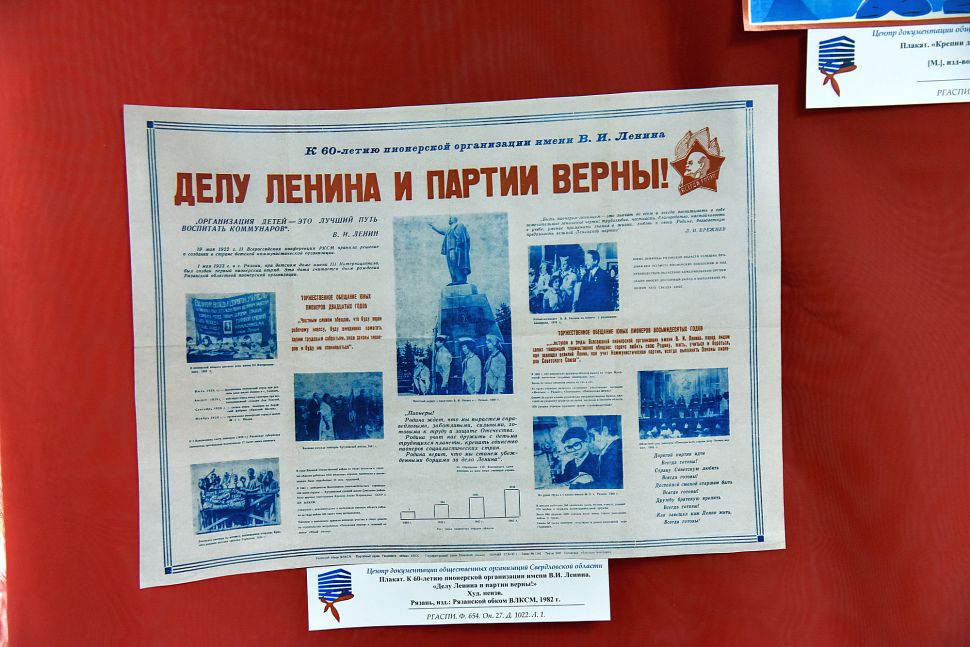 Этот выставочный проект приурочен к 100-летию Всесоюзной пионерской организации имени В.И. Ленина. Его подготовили специалисты Управления архивами Свердловской области, регионального центра документации общественных организаций, городского Дворца творчества детей и молодежи.