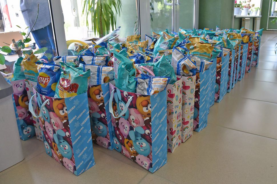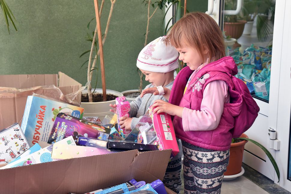 Книги, раскраски, сладости, мягкие игрушки, конструкторы получили около 60 детей.