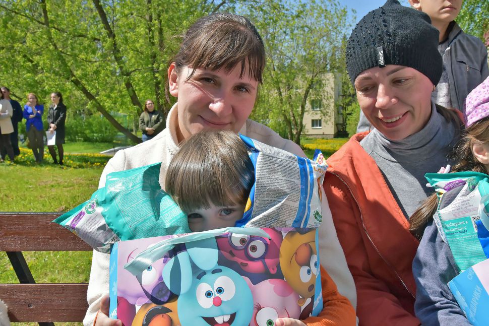 В День защиты детей военнослужащие Центрального военного округа и волонтеры вручили подарочные наборы семьям, которые покинули Донбасс на время проведения специальной военной операции.