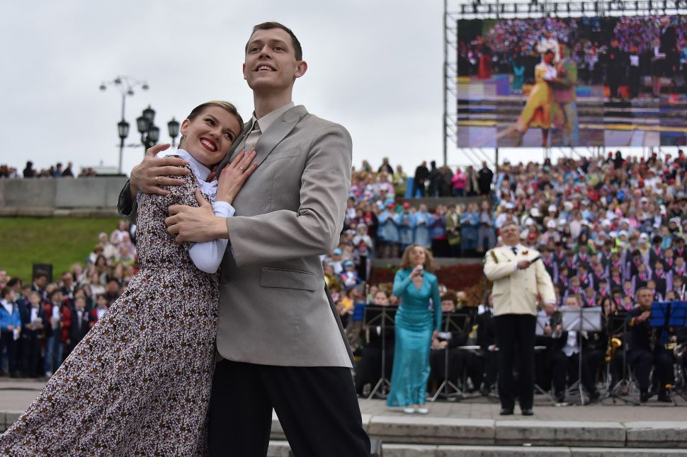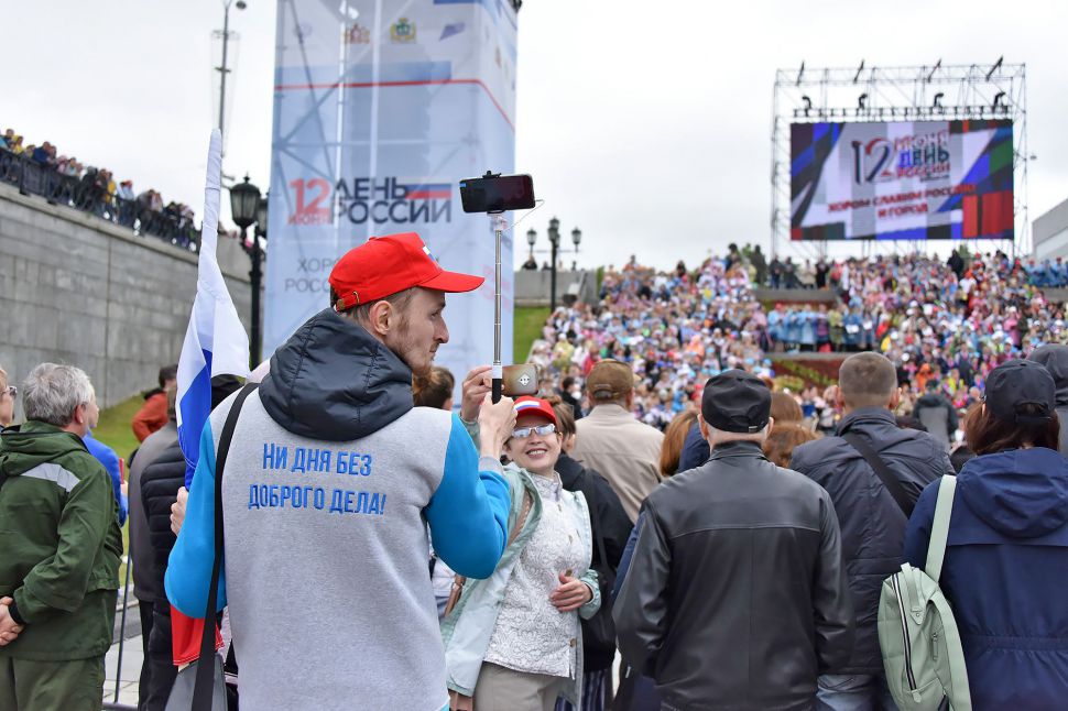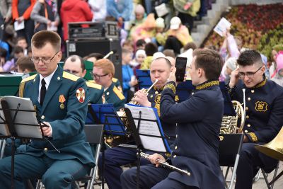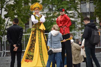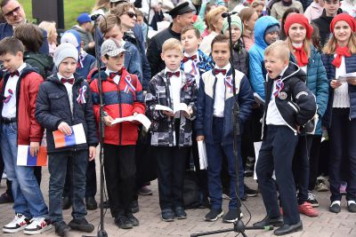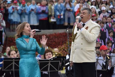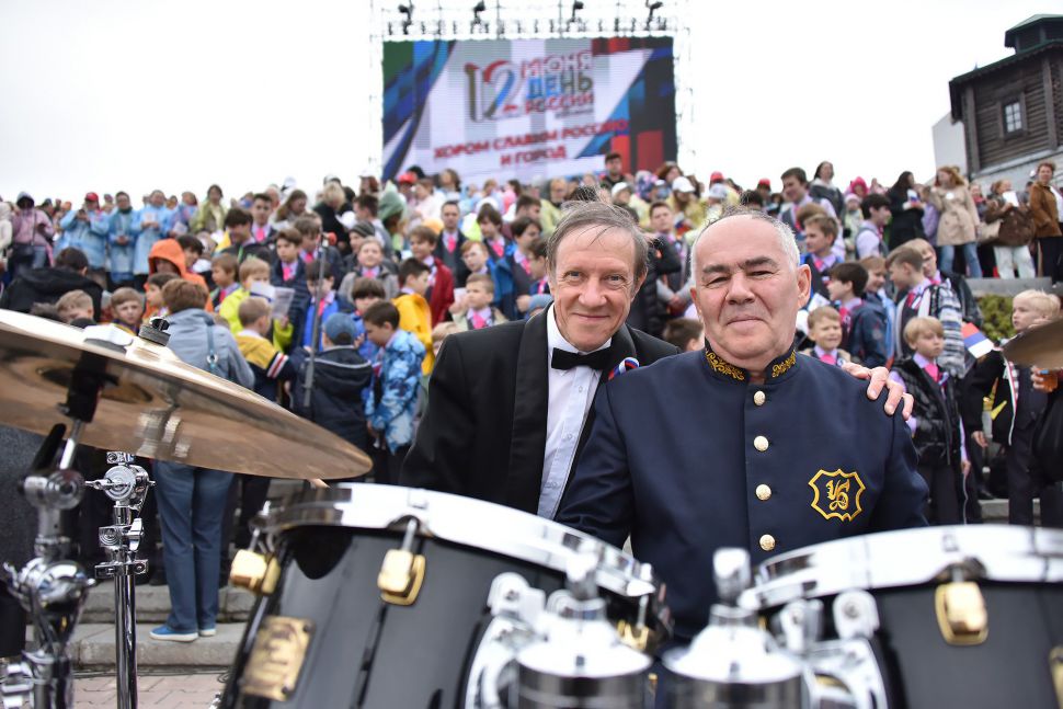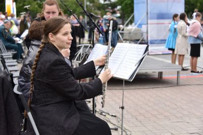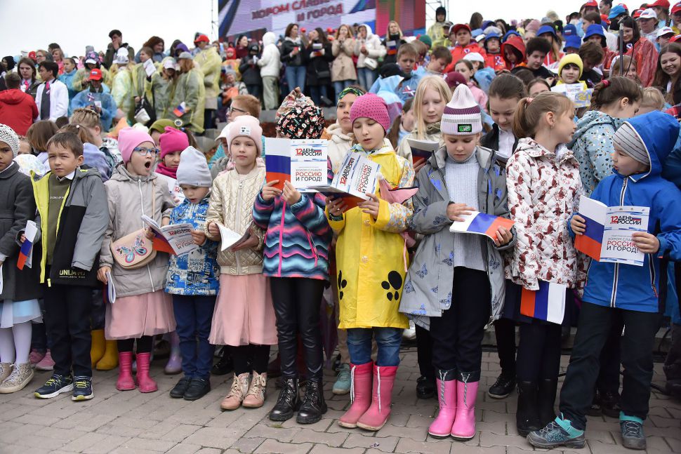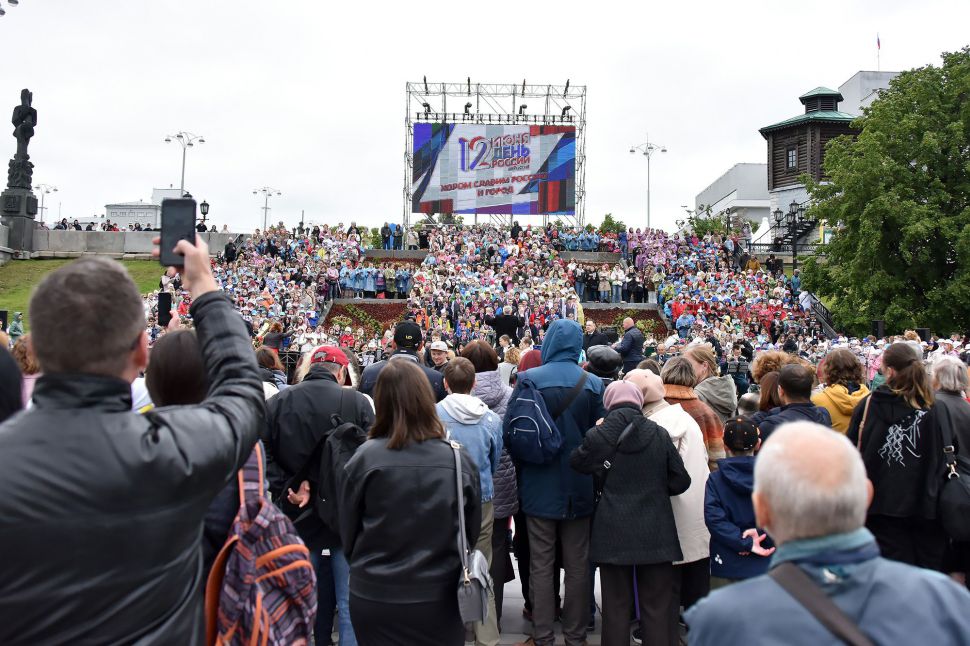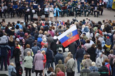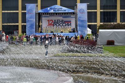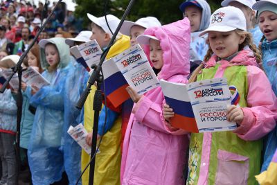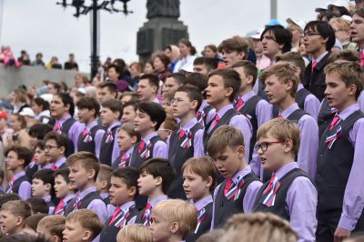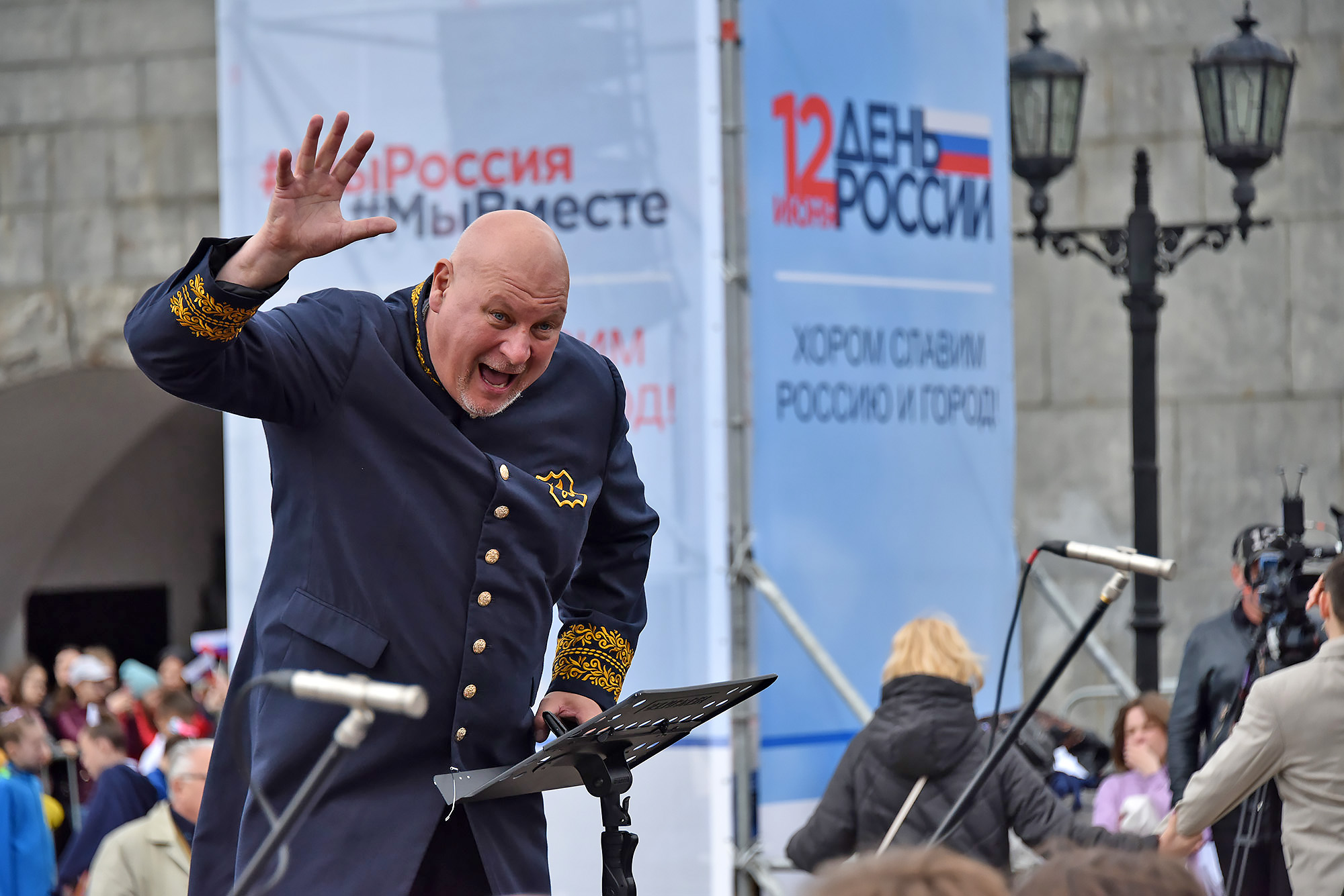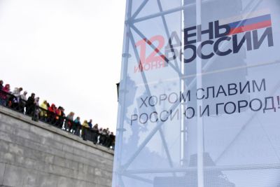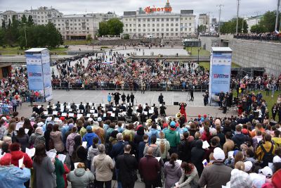 В 12 часов в Историческом сквере начался концерт «Хором славим Россию и город!». Сводный тысячный хор музыкальных коллективов Екатеринбурга под аккомпанемент духового оркестра исполнил популярные песни. Присоединиться к профессиональным музыкантам могли все желающие – тексты песен транслировался на мультимедийном экране в формате караоке.