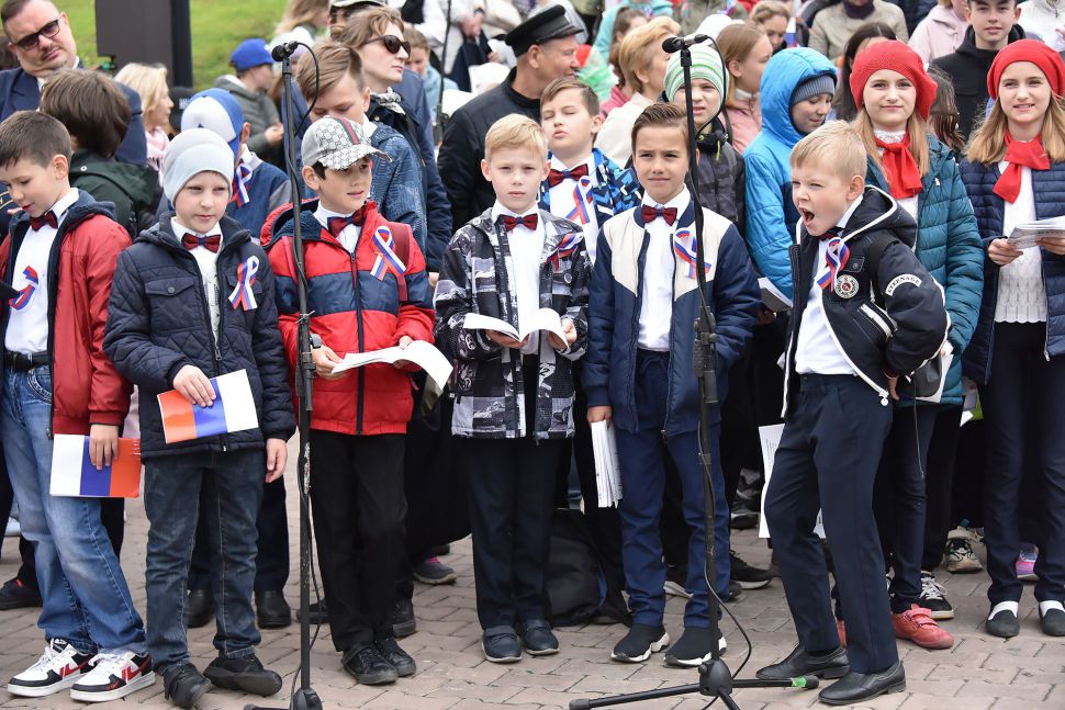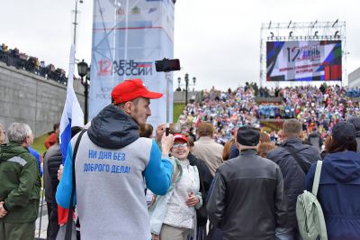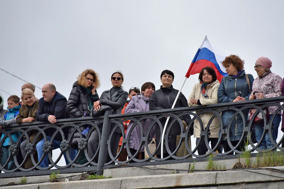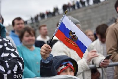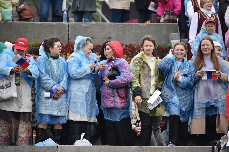 Праздник начался в 10 часов утра с церемонии подъема российского флага на Октябрьской площади.
