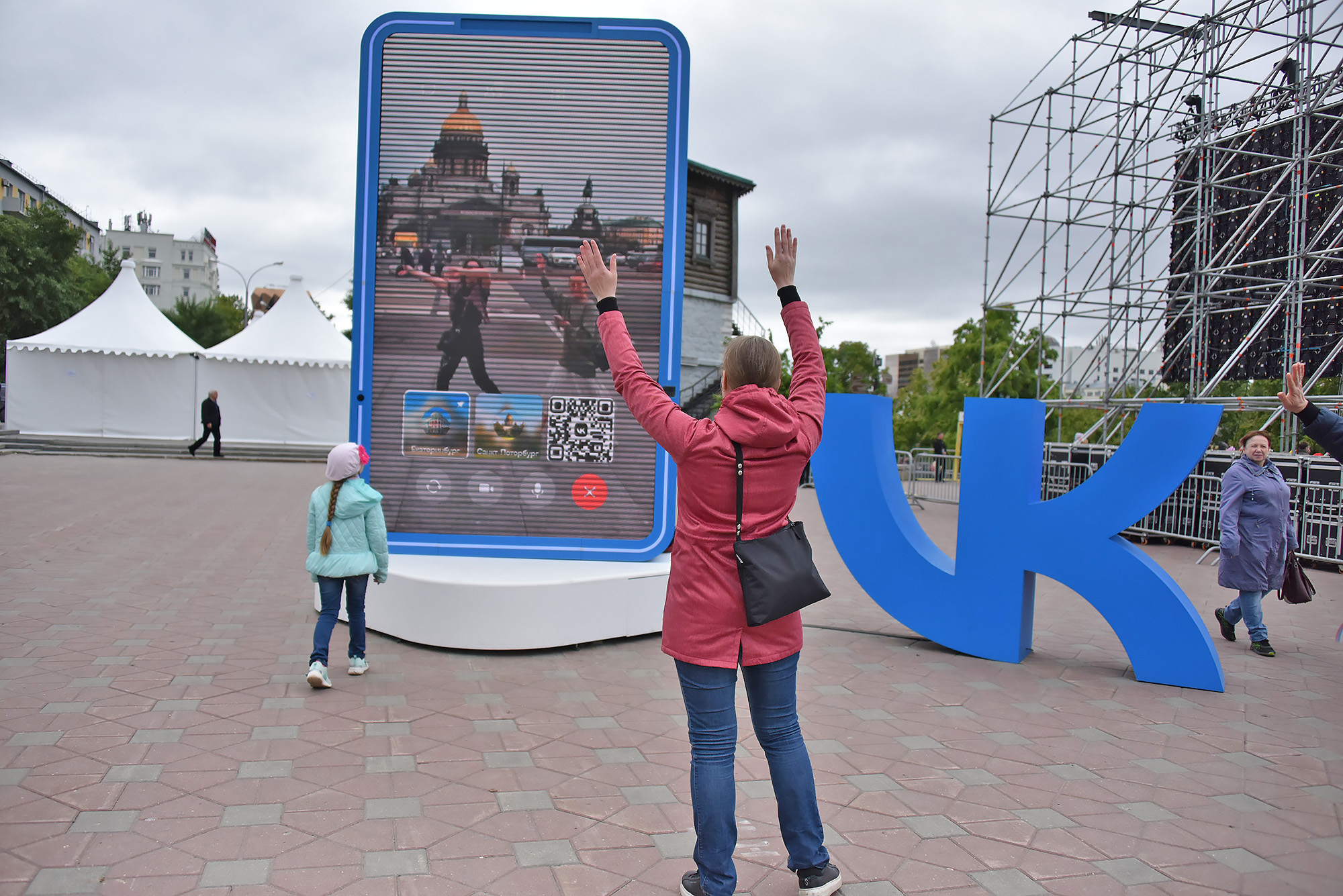 На площади Труда перед памятником Татищеву и Де Генину была размещена конструкция в виде мобильного телефона, через которую в режиме реального времени обычные прохожие смогли наблюдать за жизнью другого города и общаться с его жителями.
