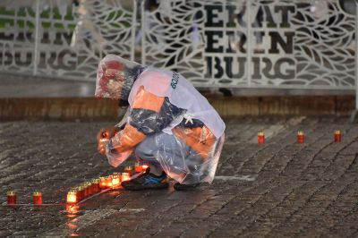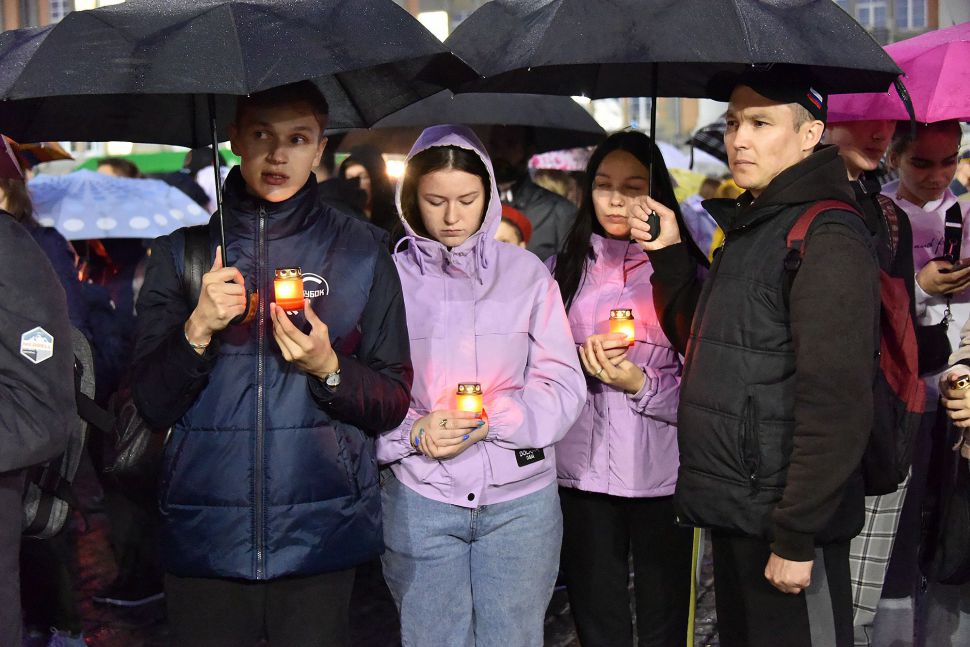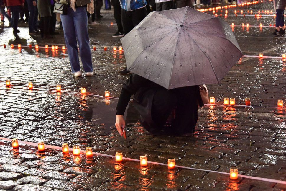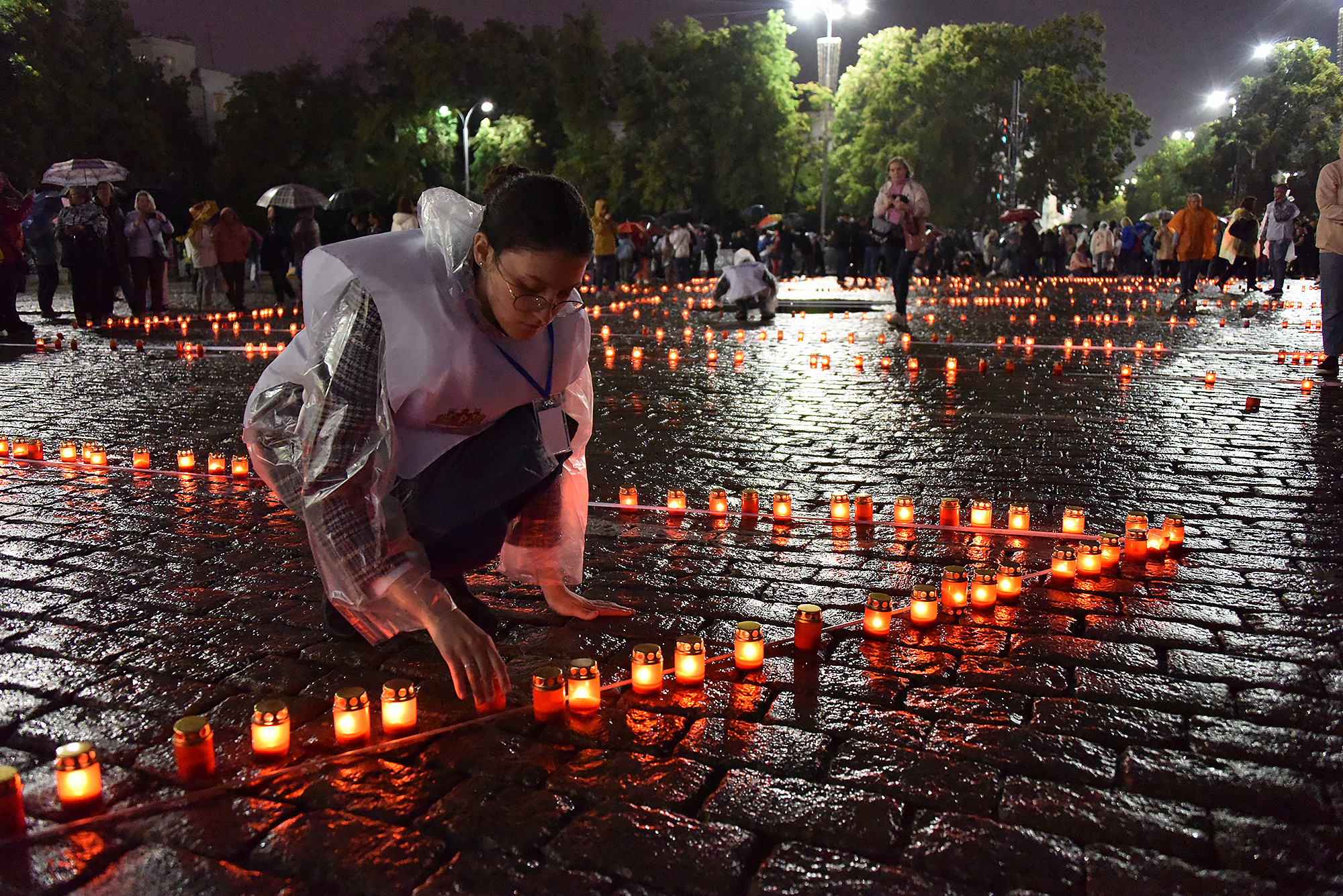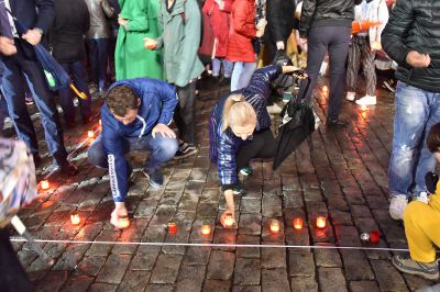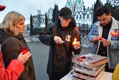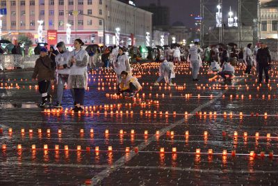 Акция завершилась минутой молчания, после чего участники акции выложили из зажженных свеч слово «Помним».