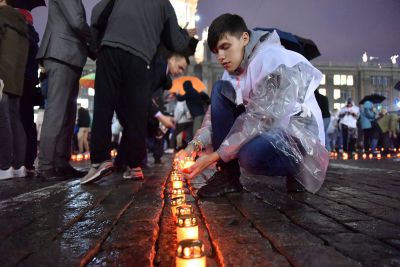 Сегодня поздно вечером в Екатеринбурге состоялась Всероссийская гражданская акция «Свеча памяти».