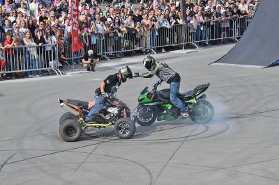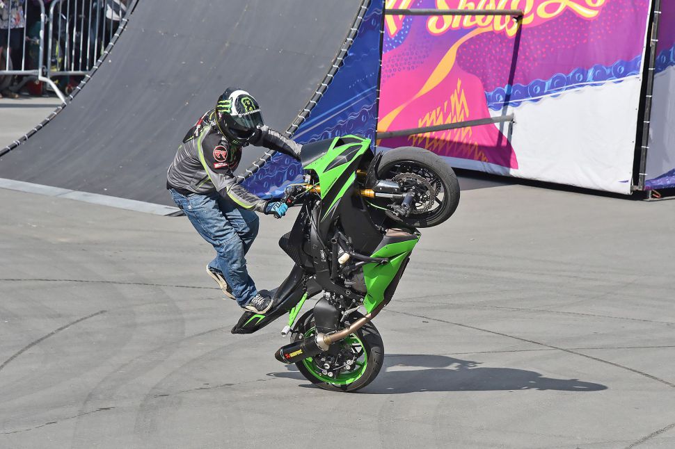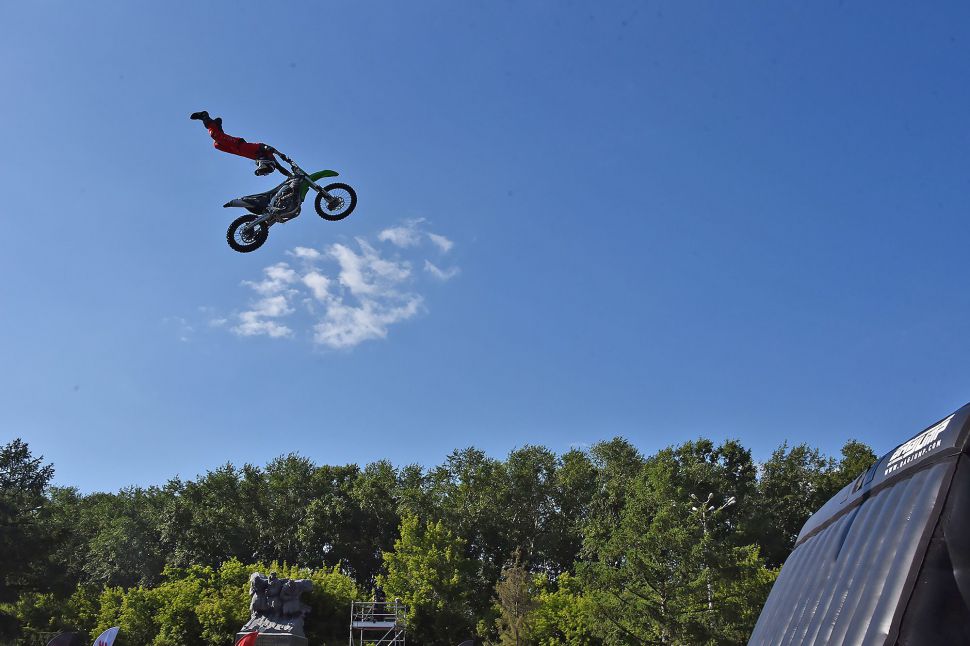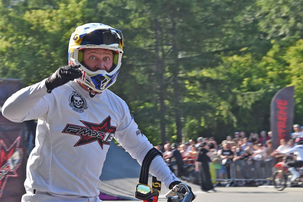 В конце праздника знаменитый мотоциклист Алексей Колесников устроил мотошоу.