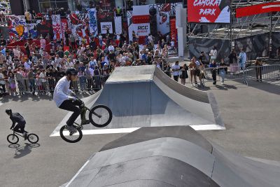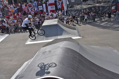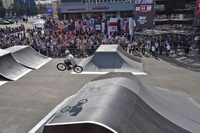 Профессиональные спортсмены соревновались в дисциплинах BMX, скейтбординг и самокат.