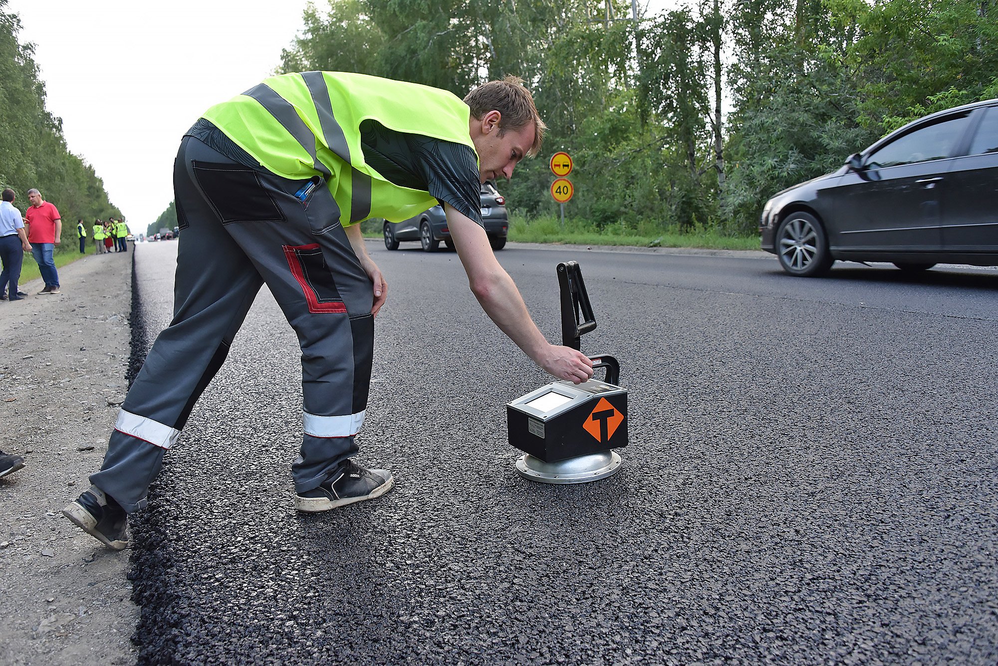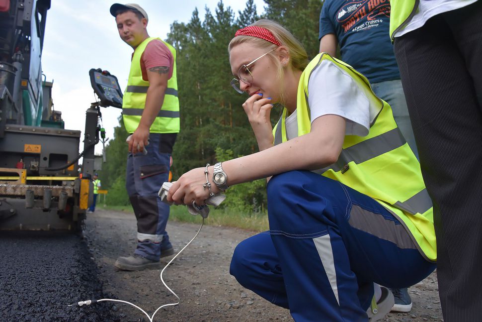 «Весь участок ремонта составляет 11 километров, из них три километра мы ремонтируем по инновационной технологии. Укладываем асфальтобетон, созданный с помощью технологии объемного проектирования по методу суперпэйв. Мы будем наблюдать, как инновационный асфальт ведет себя на протяжении гарантийного и межремонтного сроков, как противостоит различным деформациям, справляется с динамическими нагрузками, колееобразованием, воздействием внешних факторов. Будем сравнивать с традиционным асфальтом и по результатам примем решение о распространении этой технологии на другие дороги с интенсивным движением», — рассказал первый заместитель начальника управления автомобильных дорог Свердловской области Владимир Оглоблин.