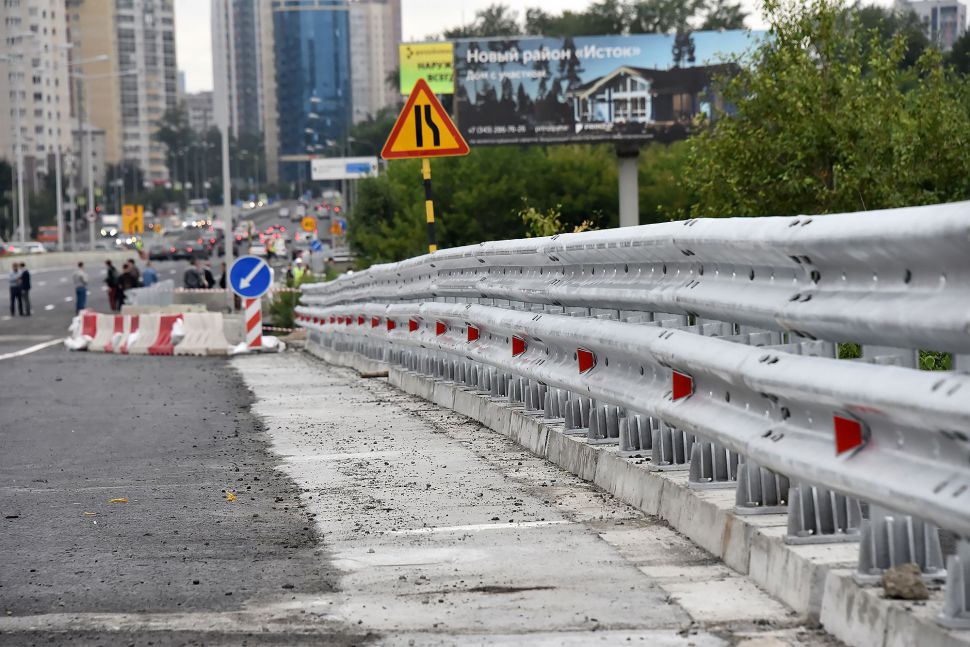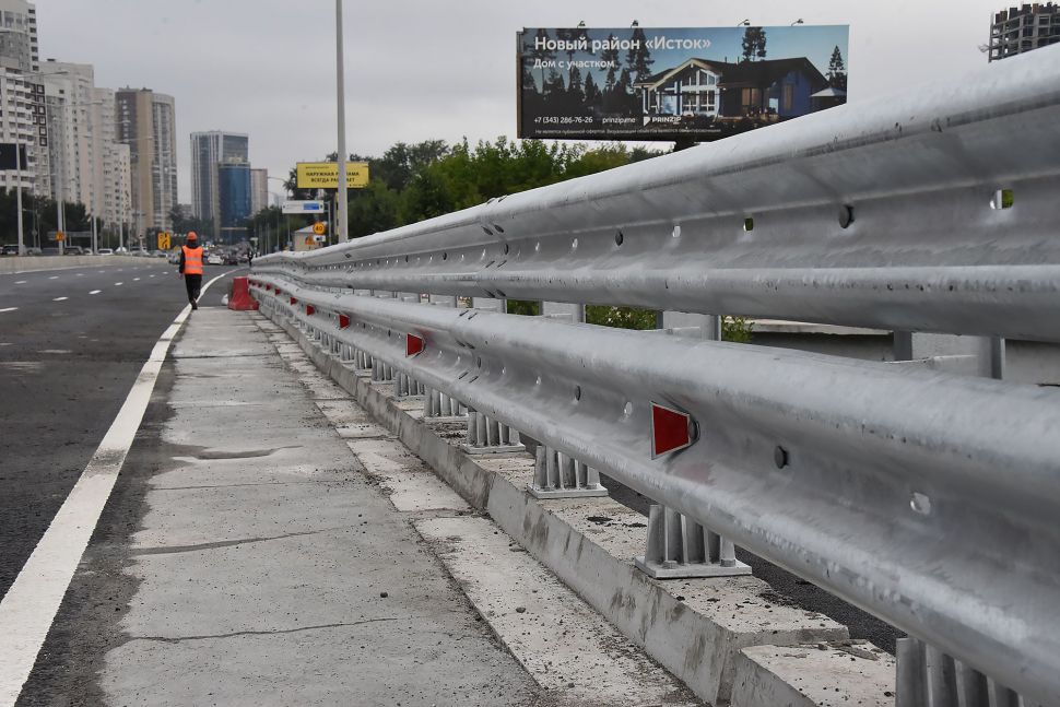 Сегодня утром в Екатеринбурге открыли сквозное движение по обновленному путепроводу на пересечении улицы Луганской и Объездной автодороги.