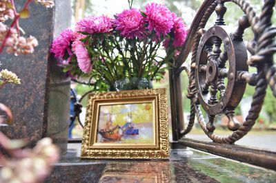 «Рассматривали много вариантов фотографий, но выбрали именно эту. На ней ему около 56 лет. Он тогда был полон сил, работал в „Каравелле“, у него было много планов и романов впереди. Он был гениальным человеком. Мы с ним прожили 56 лет, я ни разу не видела, чтобы он бездействовал. Мои дети выросли под звук пишущей машинки», — вспомнила вдова писателя Ирина Крапивина.