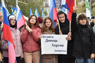 Напомним результаты пятидневного голосование в Донецкой и Луганской народных республиках, в Херсонской и Запорожской областях, когда «за» высказалось подавляющее большинство жителей этих территорий: