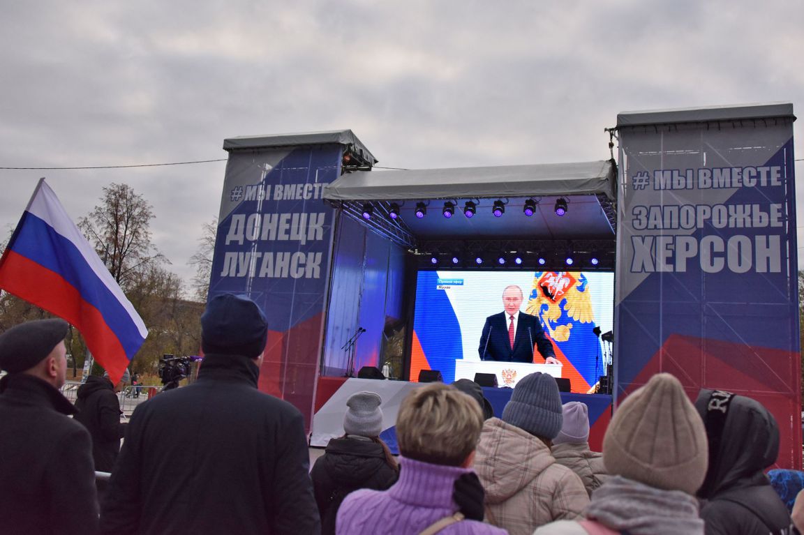 После выступления Владимира Путина были подписаны документы о принятии в состав РФ четырех новых субъектов: Донецкой и Луганской народных республик, Херсонской и Запорожской областей.