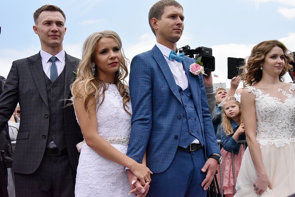 Мобилизованные уральцы могут зарегистрировать брак в день обращения в ЗАГС. Так, по упрощённой процедуре 25 октября в отделе ЗАГС Октябрьского района Екатеринбурга брак заключили четыре пары – для них провели общую торжественную регистрацию.
