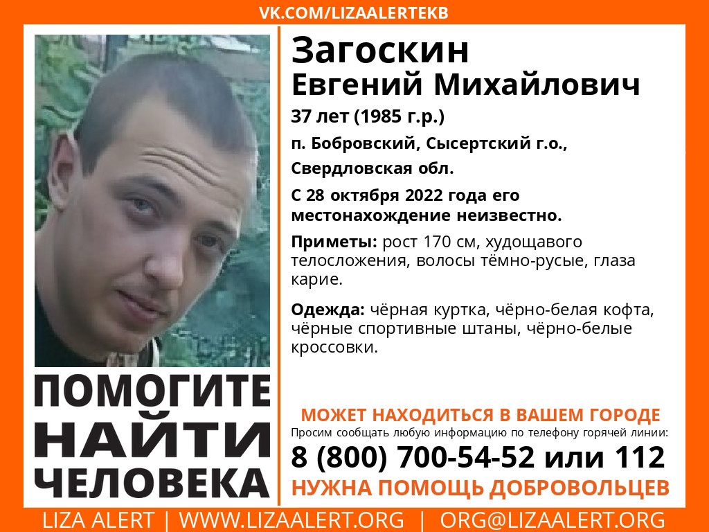 Полиция, волонтеры «Лиза Алерт» и родственники 37-летнего Евгения Загоскина ищут мужчину с 28 октября.