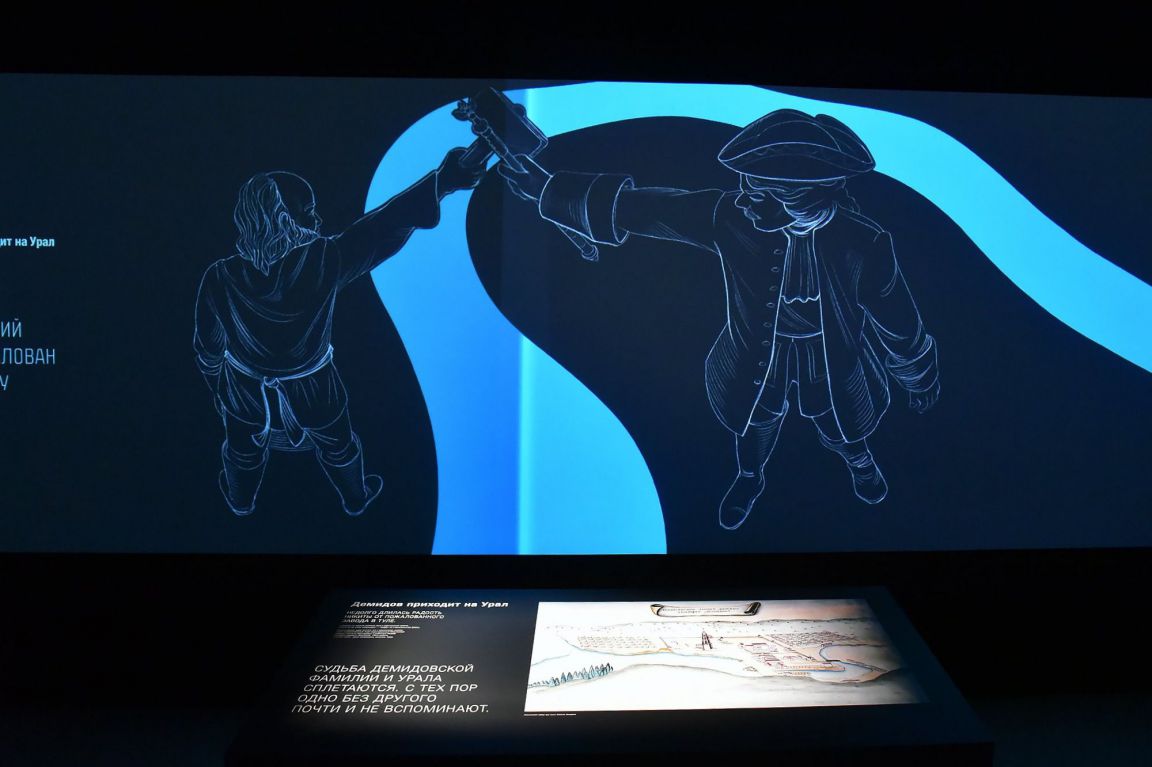 На выставке при помощи 3D-маппинга воссозданы технологии XVIII века: в залах есть 20 тачей с архивными материалами, два голографических театра, лайтбоксы, фабрика XVIII века, впервые воспроизведенная в VR, 360° панорама Невьянска петровской эпохи. Сочетание классических и инновационных решений создает многоплановый, комплексный опыт погружения в петровскую эпоху.