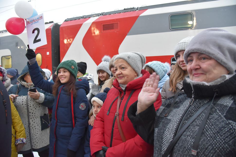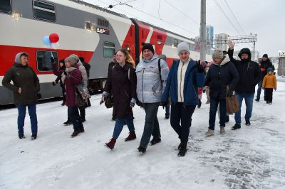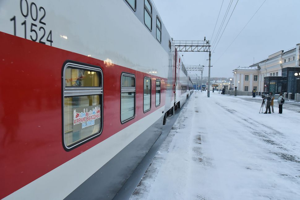 Двухэтажный туристический поезд привез первых гостей из Самары на Урал