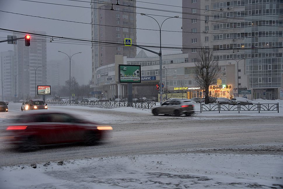 Из-за холода на дорогах Екатеринбурга образовались снежные наросты