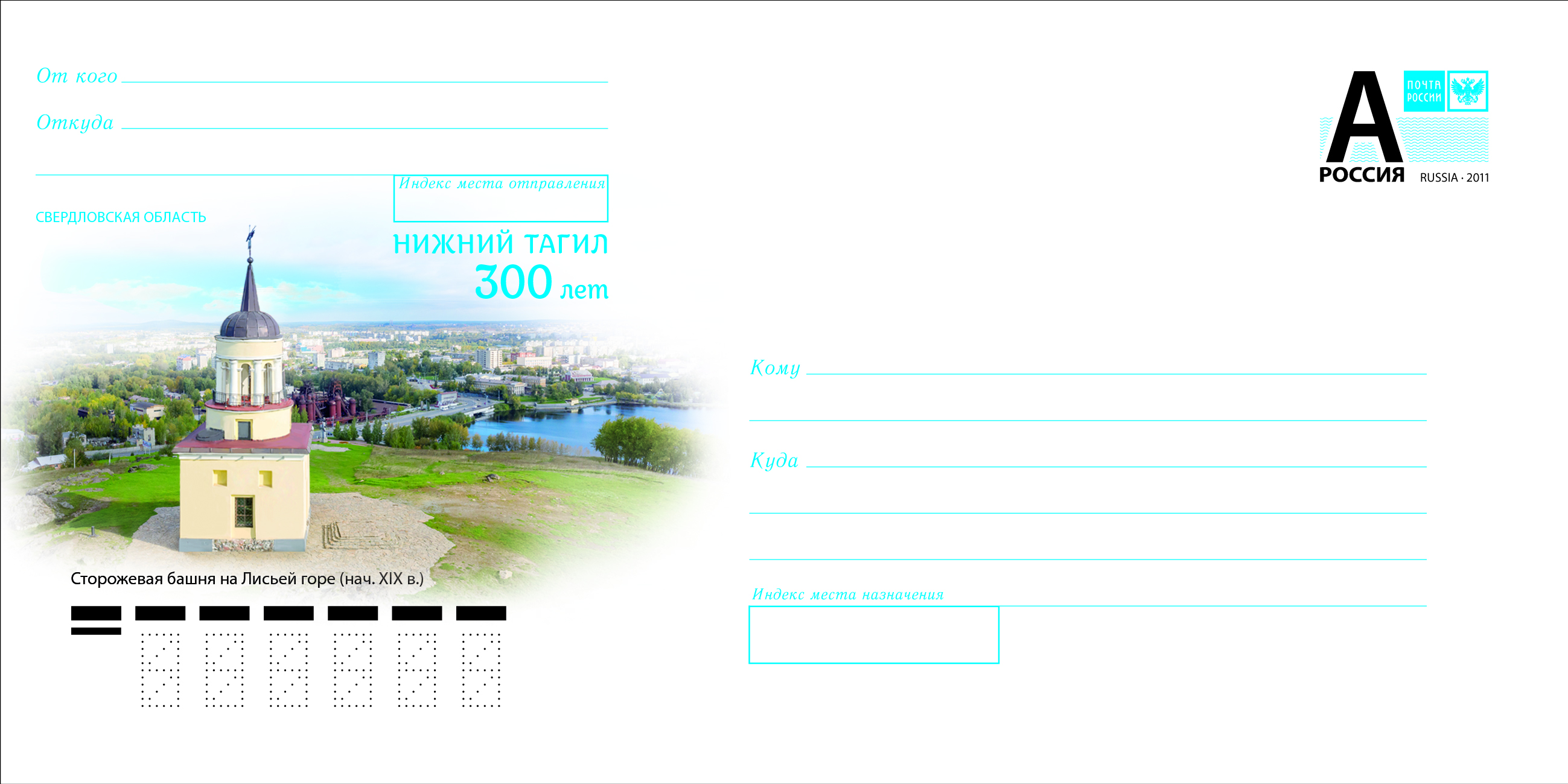 Почта России выпустила конверт, напечатанный в честь юбилея Нижнего Тагила. На нем изображена Сторожевая башня на Лисьей горе.