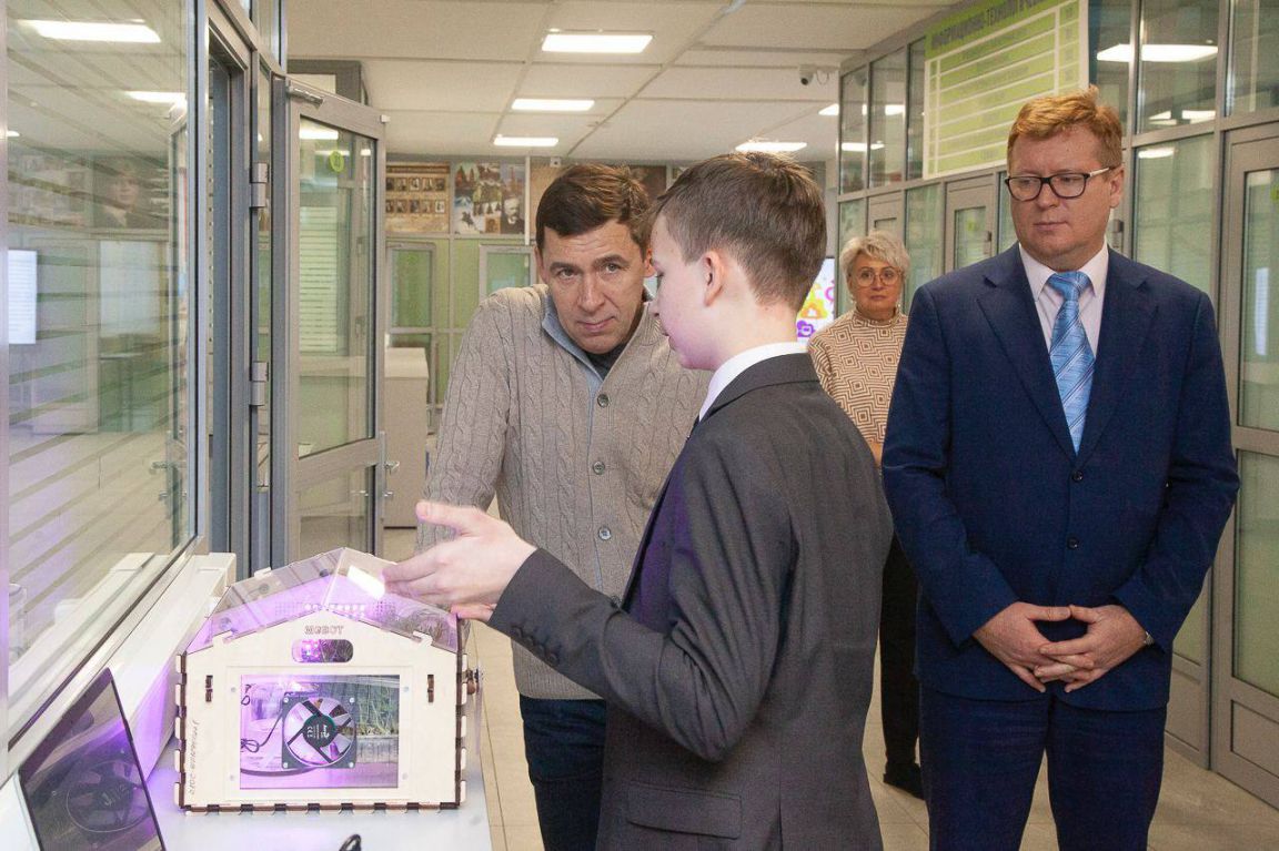 Губернатор вместе с предпринимателем и инициатором запуска ряда проектов по подготовке высококвалифицированных кадров для промышленности Андреем Комаровым оценил передовые образовательные площадки, созданные в Первоуральске. Проекты, реализуемые в этих учебных заведениях, нацелены на подготовку профессионалов в областях металлургии, машиностроения, эксплуатации, монтажа, обслуживания и ремонта промышленного оборудования, автоматизации технологических процессов.