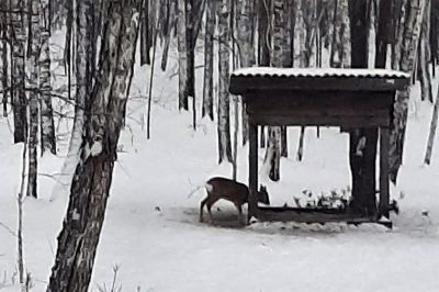 Для косуль и лосей зимой обязательно ставят ящики с солью, которая является минеральной добавкой. Самцам она необходима для роста рогов, а самкам — для вынашивания здорового потомства.