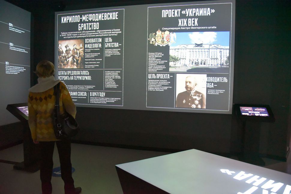 — Она о ключевых и поворотных моментах, о которых и в России, и на Украине важно помнить. Наряду с уникальными фотографиями, видеоматериалами, кинохрониками, документами в экспозиции представлены карты, плакаты и многие другие источники. Из соображений объективности в выставке представлена трактовка исторических событий с точки зрения украинского и российского государств, — рассказали организаторы.
