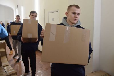 «Для наших ребят, которые находятся на передовой, мы собрали теплые вещи — носки и термобелье, продукты длительного хранения, средства личной гигиены, фонарики, печки», — рассказала Евгения Миронович, доброволец Всероссийского студенческого корпуса спасателей.