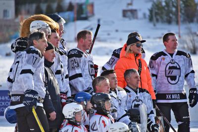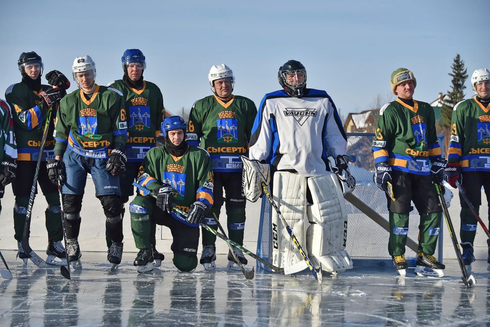 На лед вышли дети и взрослые. Сысерть представили юношеская сборная «Малахит» и хоккейный клуб «Сысерть». За сборную ХК МВД играл лыжник, заслуженный мастер спорта Иван Алыпов.