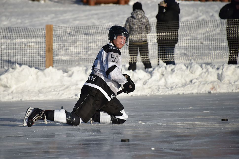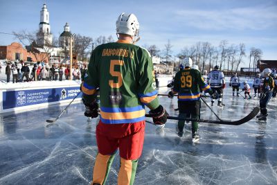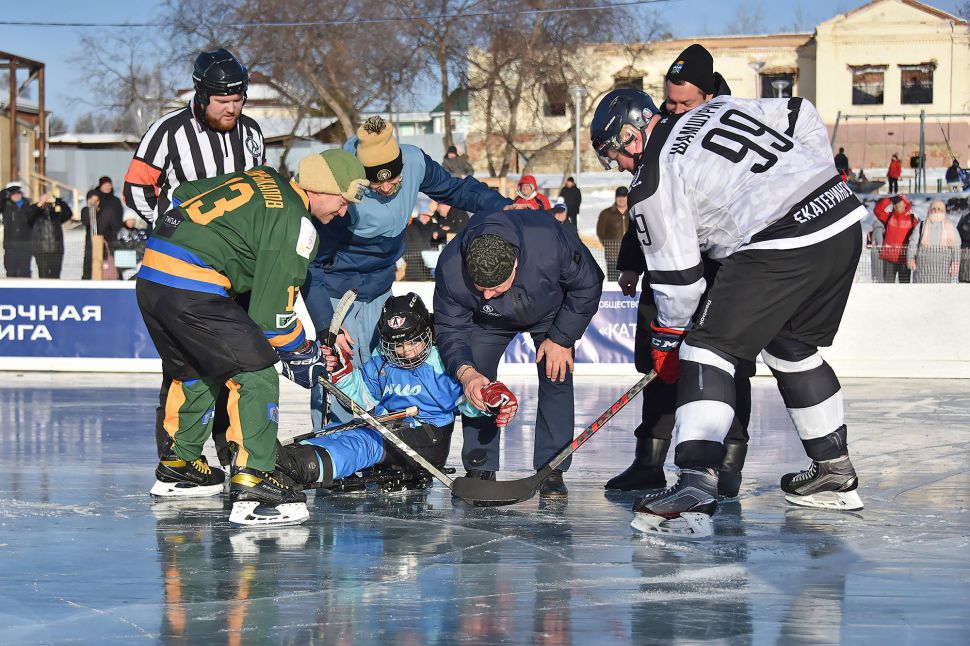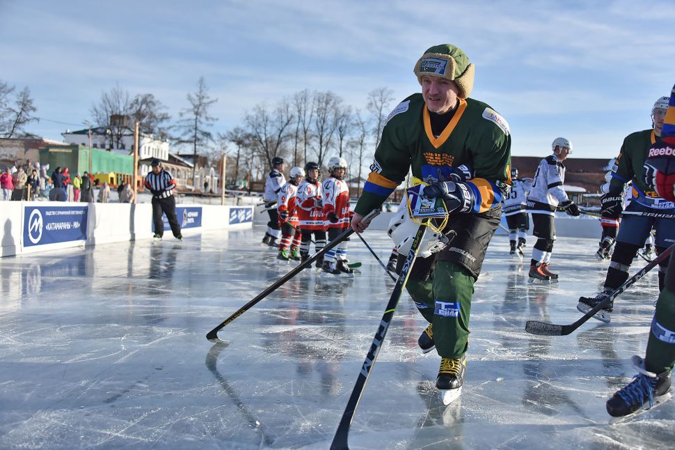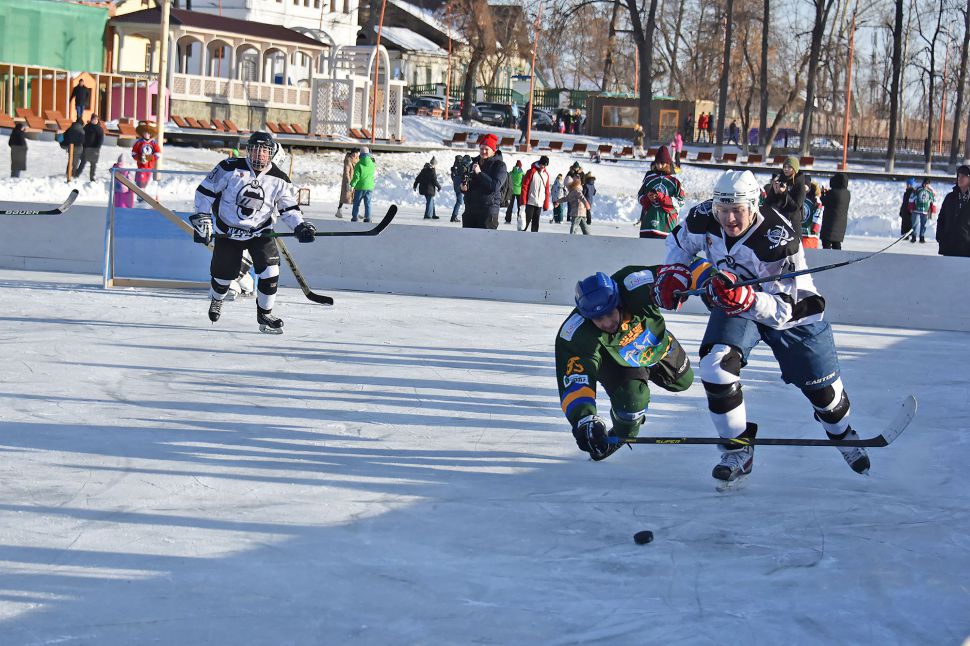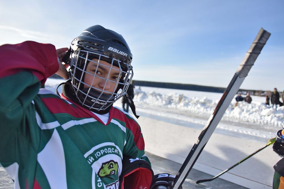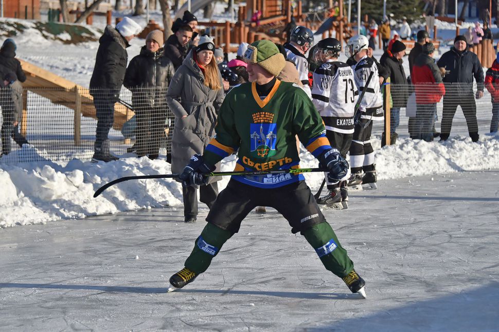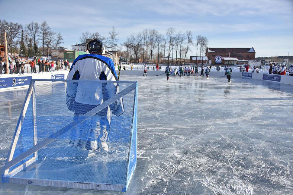 Матч между местной сборной и хоккейным клубом МВД из Екатеринбурга в рамках проекта «Студеный лед» от Ночной хоккейной лиги прошел на городском пруду.