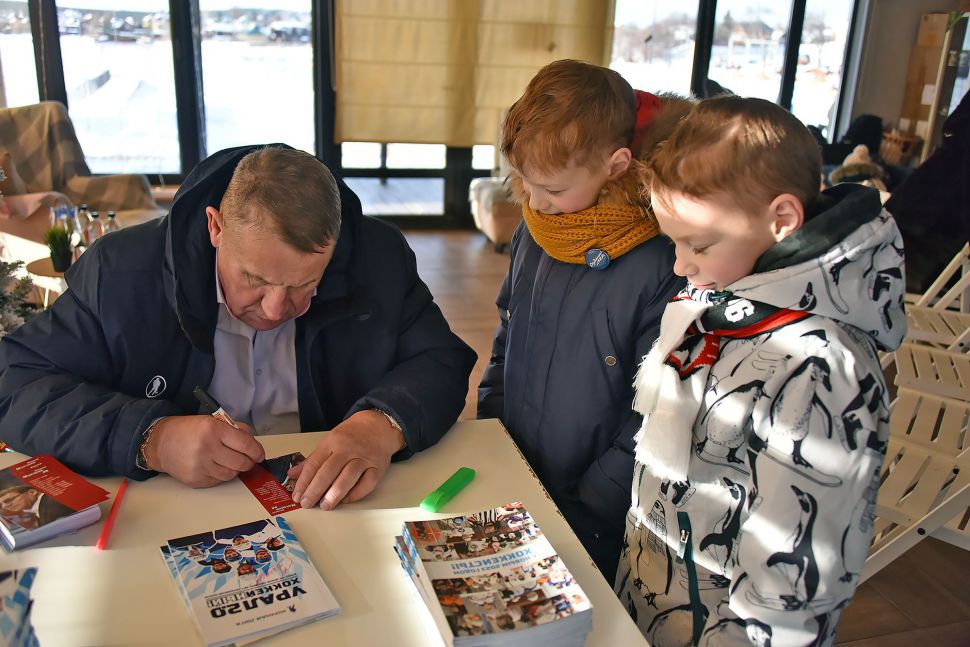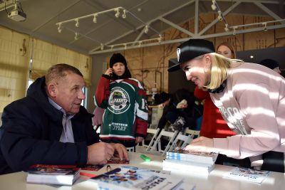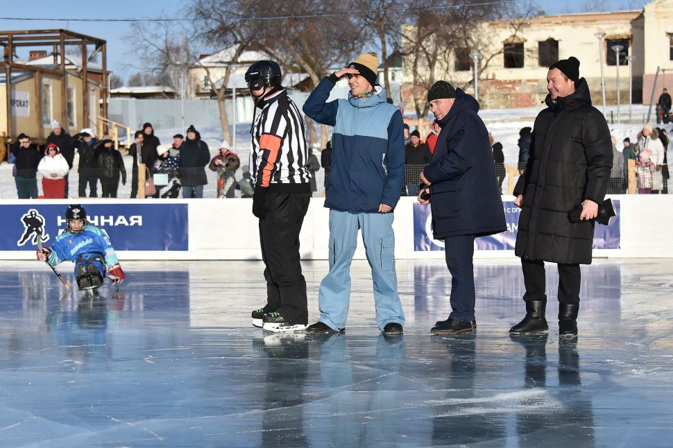 Игроков и болельщиков приветствовали глава округа Дмитрий Нисковских и легенда хоккея, чемпион мира Николай Макаров.