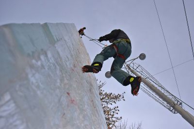 Поколение ледовых вершин проходило под контролем опытных инструкторов и курсантов МЧС. Участникам соревнований организаторы «Ледового штурма» предоставили не только инструменты, но и экипировку.