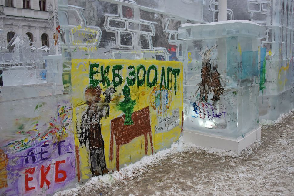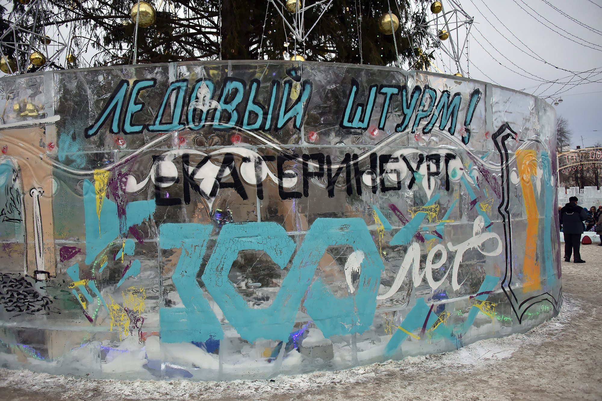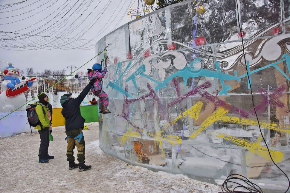 Сегодня, 22 января, в 11:00 начался ежегодный фестиваль «Ледовый штурм». Фигуры, посвященные 300-летию Екатеринбурга разрисовали мастера стрит-арта, а скалолазы приступили к покорению ледяных высот.