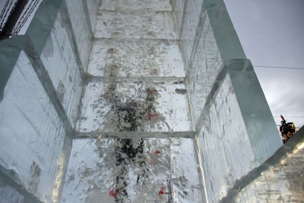 В понедельник, 23 января, ледяные фигуры демонтируют, а вместо горок и елки вновь появится автопарковка.