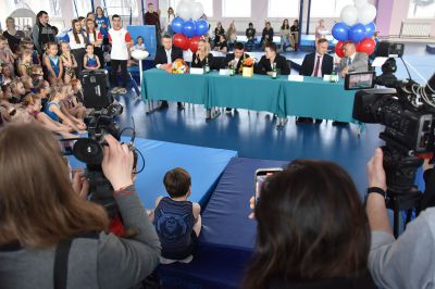 Будущих чемпионов с новым «домом» поздравили гимнасты, призеры Олимпийских игр Давид Белявский и Никита Нагорный. Для воспитанников «Юности» и «Локомотива» они устроили мастер-классы, а также рассказали, как попали в большой спорт.