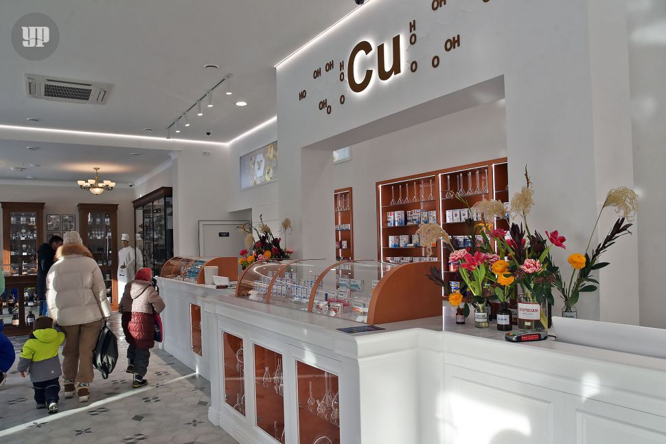 По данным пресс-службы УГМК, старинные предметы для заведения собирали по всей стране. Пространство аптеки украшено мебелью и витринами, созданными по образцам XIX и XX веков.