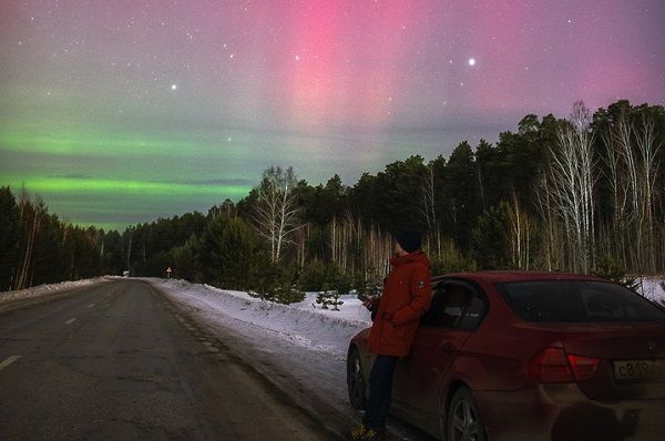 «Северное сияние над Екатеринбургом. Очень редкое явление в наших местах. Доехав до локации, мы застали последние минуты вспышки», — написал Евгений Кудымов в своих социальных сетях.