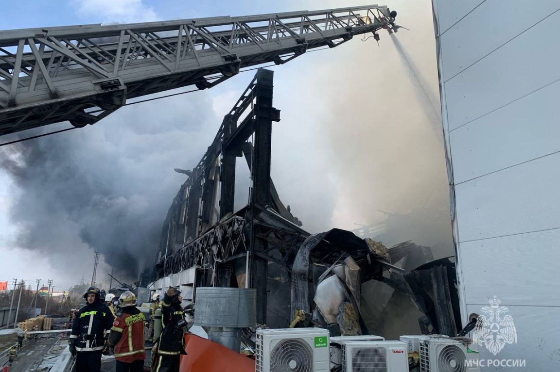 В 13:11 огнеборцы локализовали пожар на площади 4 тысячи квадратных метров. Специалисты МЧС приступили к тушению внутри здания. Для доступа в помещения используется специнструмент.