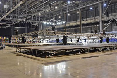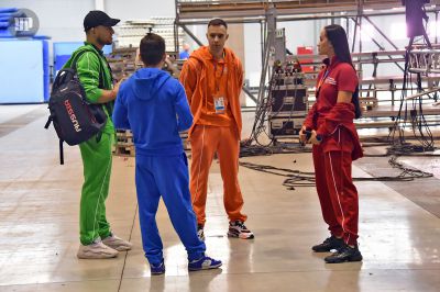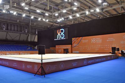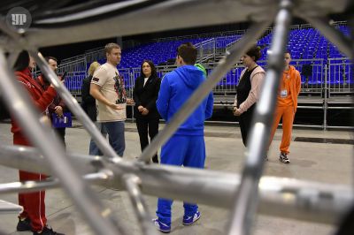 Министр физической культуры и спорта Свердловской области Леонид Рапопорт, соревнования рассказал, что за несколько дней до старта 50 фур привезли на площадку десятки тонн спортивного оборудования, в том числе и трибуны для зрителей. Общая площадь застройки составила более 20 тысяч квадратных метров и уже завтра два выставочных павильона превратятся в гимнастические помосты.