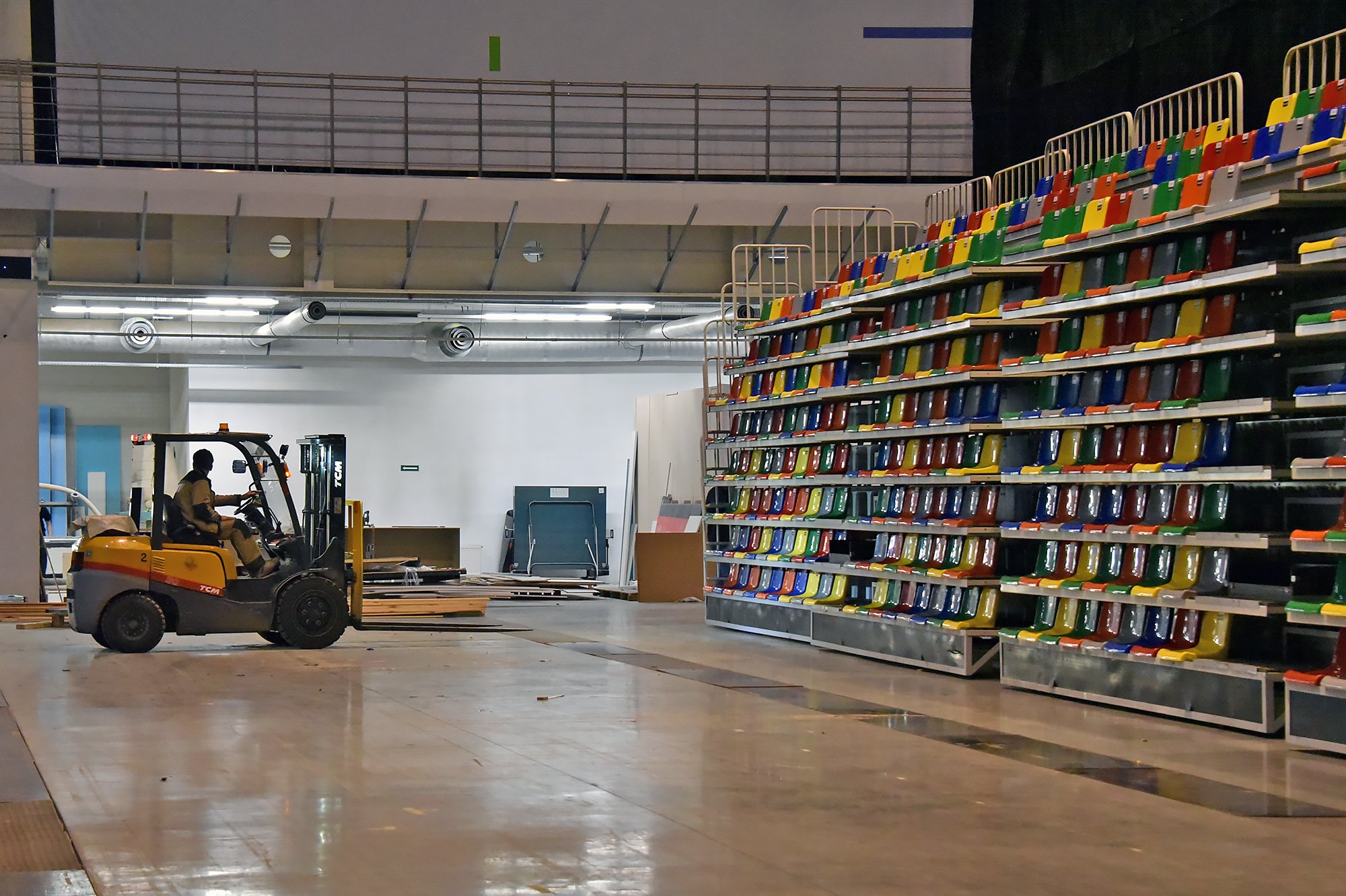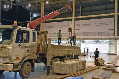Для проведения международных соревнований по гимнастическим видам спорта в в МВЦ «Екатеринбург-ЭКСПО» прибыли 50 фур оборудования.