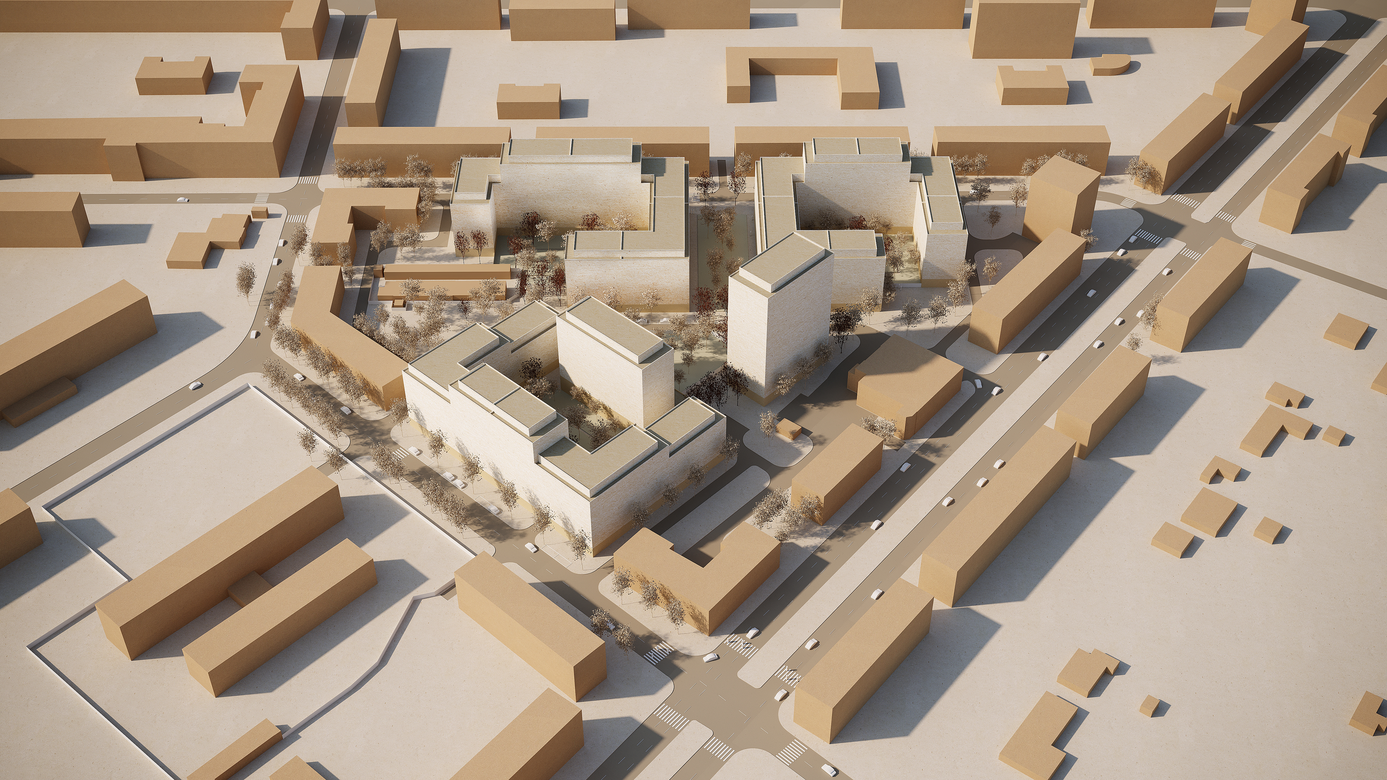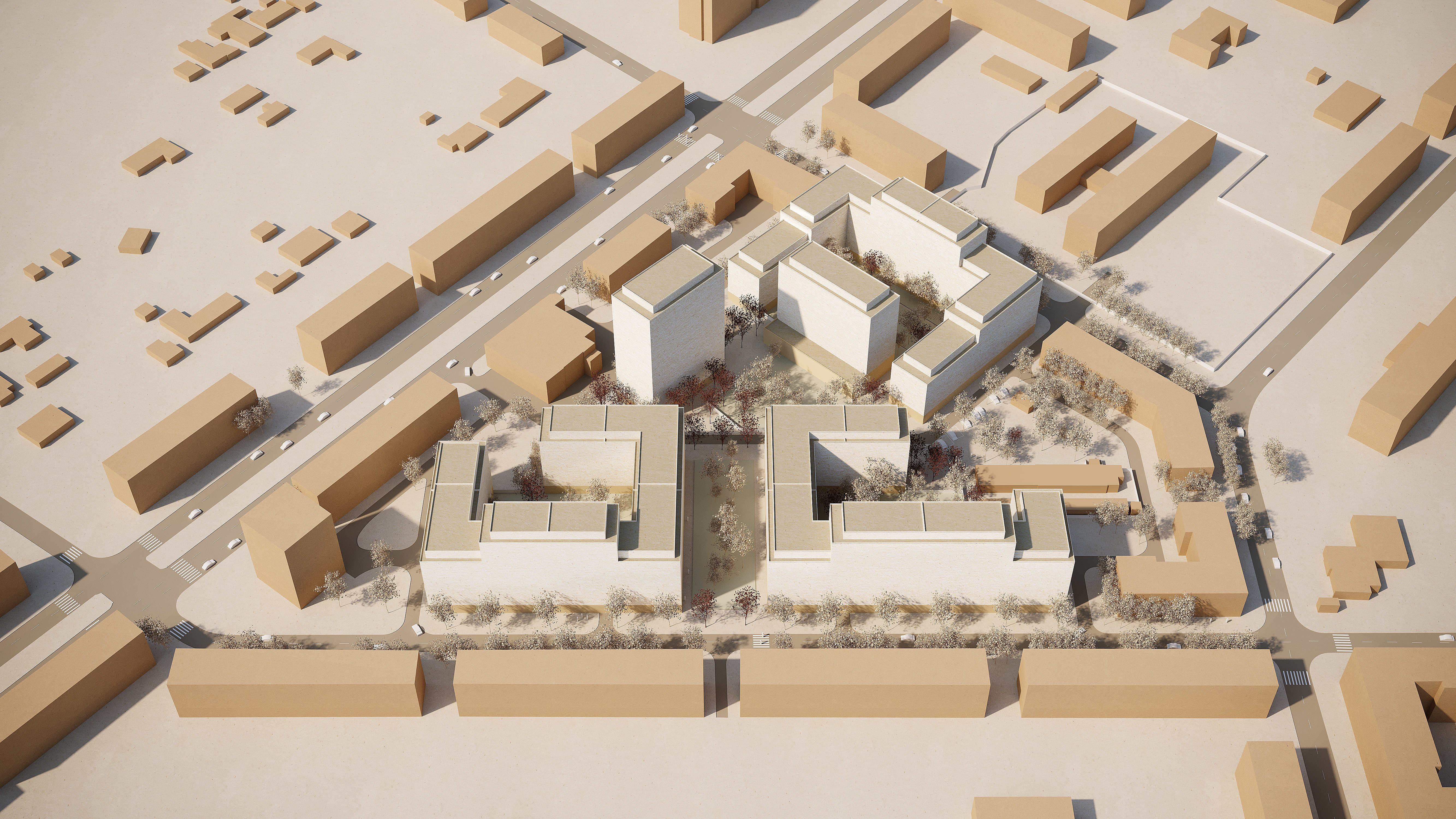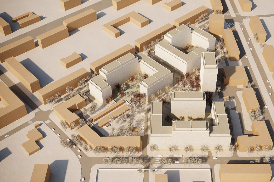Основной объем квартала будет сформирован среднеэтажными домами с закрытым двором. Доминантой проекта станет 17-этажная башня, расположенная на пересечении пешеходных потоков. Рядом с ней появится многофункциональный сквер.