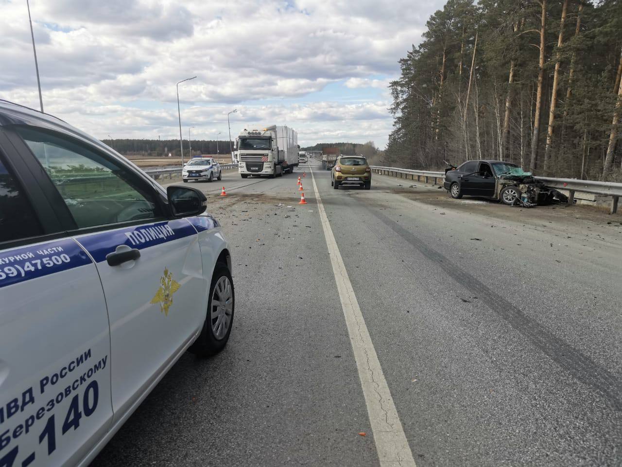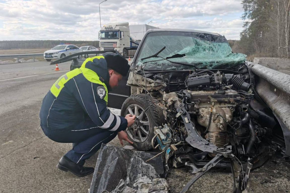 Под Екатеринбургом легковушка на скорости врезалась в грузовик