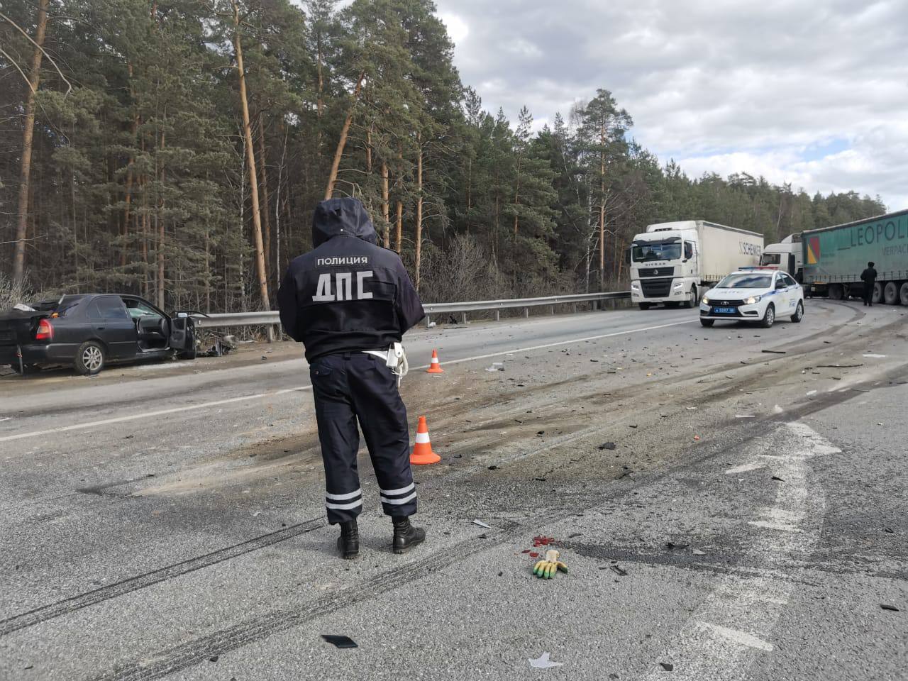 Столкновение легкового автомобиля «Хундай» и грузового «МАН» произошло на 17 километре екатеринбургской кольцевой автодороги. По предварительным данным, водитель «Хундай» уснул за рулем и допустил выезд на встречную полосу.