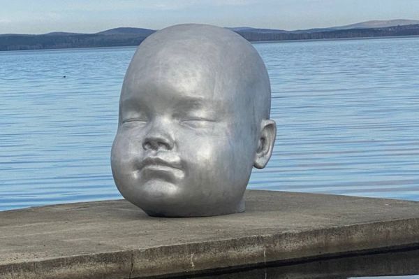 В Екатеринбурге на берегу Верх-Исетского пруда появился новый арт-объект. Это огромная голова маленького ребенка.