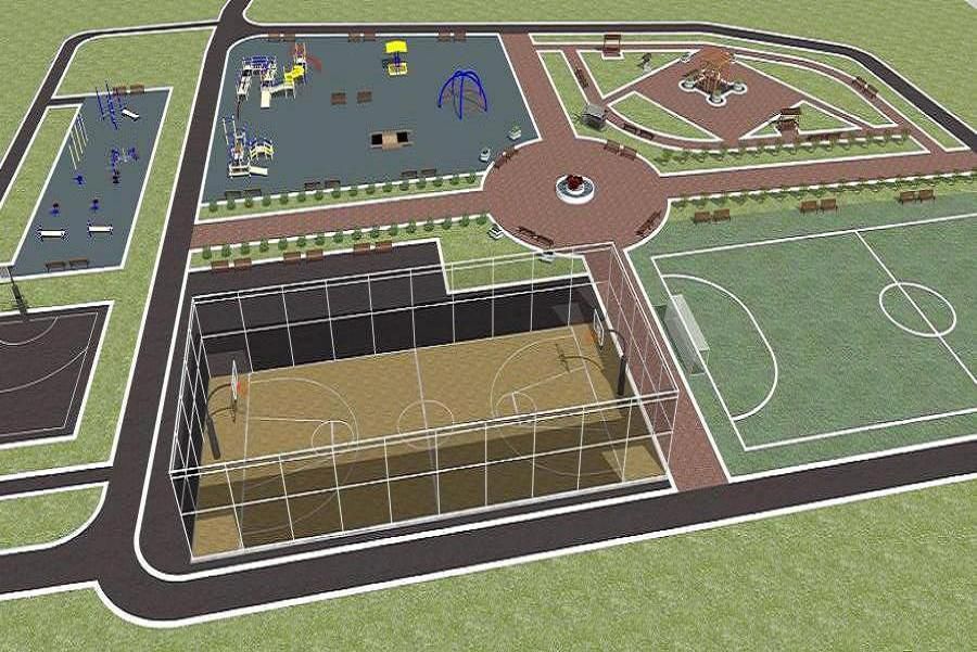На территории площадью более гектара будет обустроена зона отдыха, поле для игры в мини-футбол, установлены спортивные тренажеры. В центре появится фонтан и скамейки.