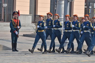 По главной площади Екатеринбурга прошли расчеты, представляющие управление штаба и авиационного объединения ЦВО, ветеранские объединения Свердловской области, мотострелковый полк танковой дивизии, железнодорожное соединение, подразделения Росгвардии, а также ГУ ФСИН по Свердловской области, Уральский институт государственной противопожарной службы МЧС России.