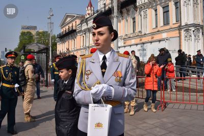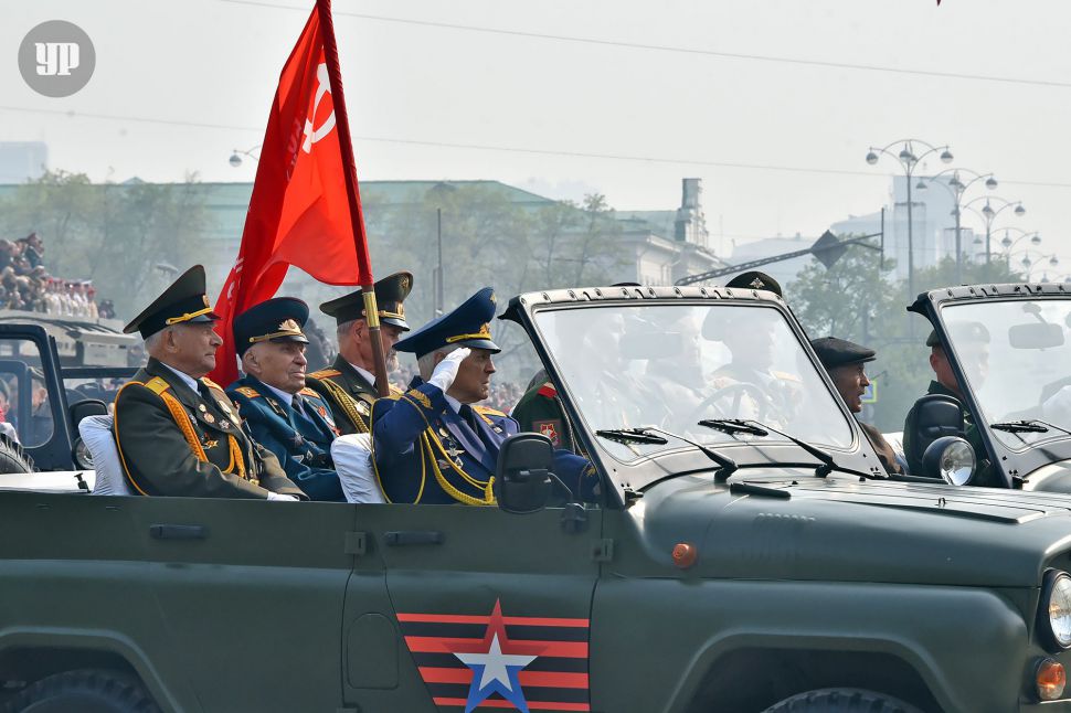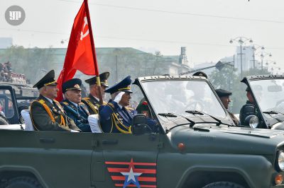 Почетными гостями праздника стали ветераны Великой Отечественной войны. Копия Знамени Победы находилась в руках полковника Владимира Лупейко, которому 9 мая, исполнился 101 год.